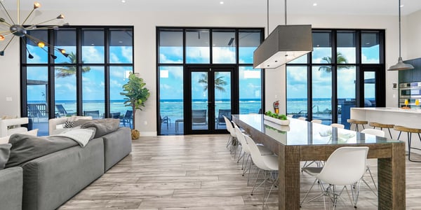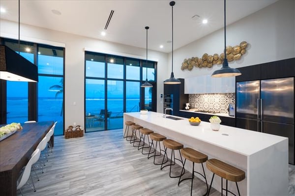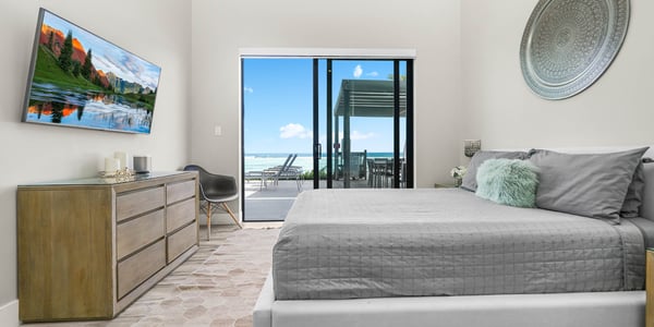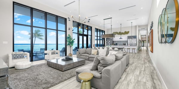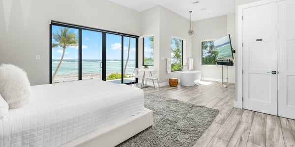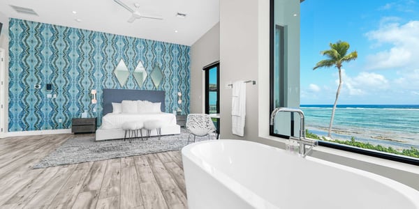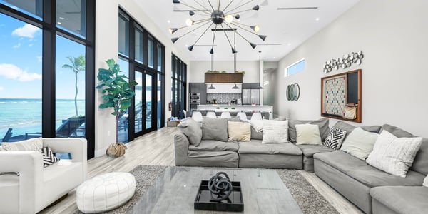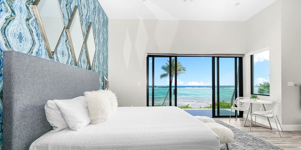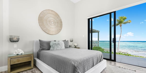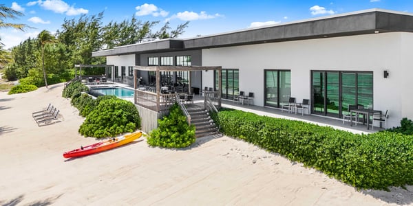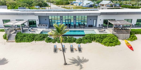 Welcome to Evolution, an oceanfront paradise with picture-perfect panoramic views of Grand Cayman's south coast. Located mid-island, our guests are only 20-25 minutes away from the airport and Seven Mile Beach, the same distance to Rum Point, and 20 minutes to the best kite-boarding, wind-surfing, and scuba diving in East End. Evolution was specifically designed to offer seven large bedroom suites and a massive vaulted great room, all on one floor and each with direct oceanfront views with walk-out access to the oceanfront pool and spa. This is a great entertaining villa for hosting a large group of adults. There is only one way to design such a villa... so Evolution is quite wide at 165+ feet. Evolution is situated on over 250′ of sandy beach, adjacent to Bodden Town's cemetery beach. Choose from two king-bed primary suites, four queen-bed suites, and a slumber party haven that can sleep 8 with two sets of full-over-full bunks and an X-Box One gaming console. Beach Notes Centrally located, the villas in Bodden Town offer shore diving and snorkeling as well as reef-protected beaches for kayaking. The beaches here offer great seashell collecting and turtle sightings in summer! The beaches are mostly sand, but can also have some natural rock formations too. Either way, with the varied marine life we have in the water, you will need to wear pool shoes or fins for foot protection. Evolution was built on an elevated sandy ridge on Bodden Town's cemetery reef, which has excellent snorkeling in only 4-8 feet of water. At 25 feet off the beach, the bottom is quite sandy. General Grand Cayman Beach Notes All beaches in Grand Cayman are technically public since the Crown owns up to the high watermark. The shoreline quality behind your property may vary slightly from the images on our website due to shifting tides and weather patterns. The next-door beach is also always available for your use. Ocean Debris and Sargassum Seaweed Beaches in Grand Cayman may also experience floating ocean debris and sargassum weed seasonally. Sargassum is a generally harmless floating seaweed that peaks over the summer months. The owners do make efforts to remove heavy sargassum and will have the beach raked before your arrival. We try our best to work around mother nature.