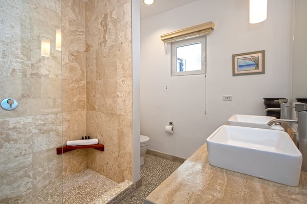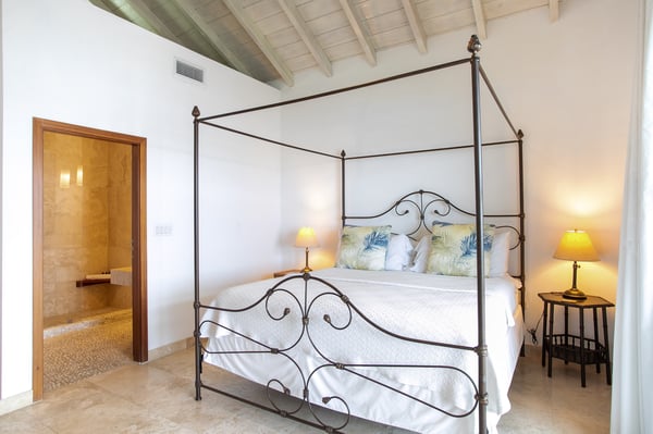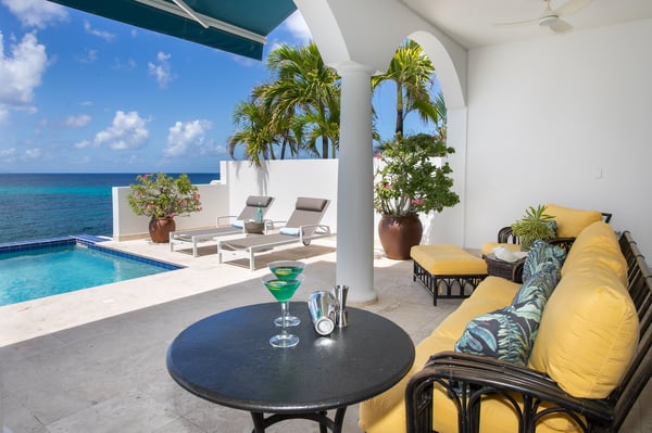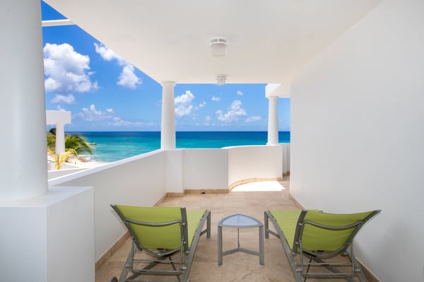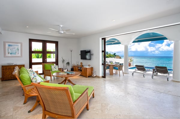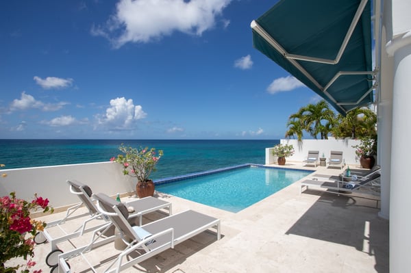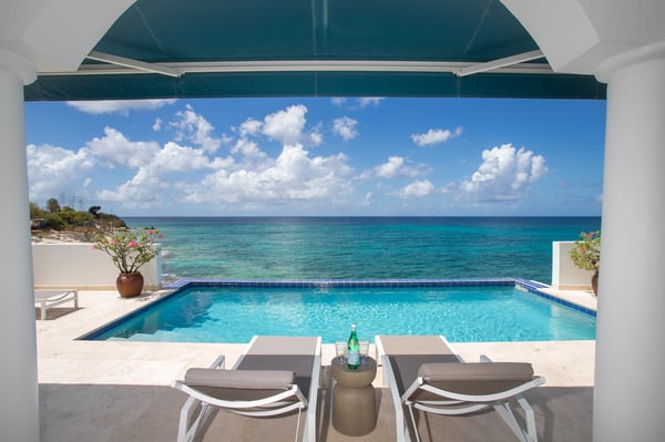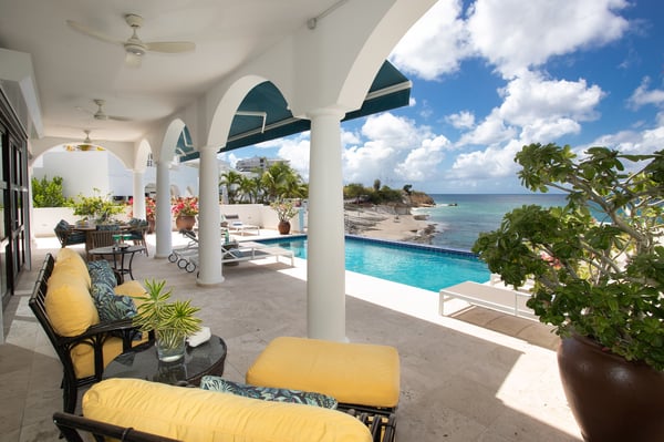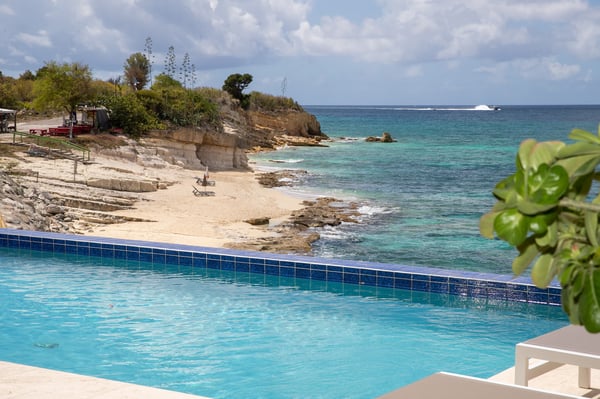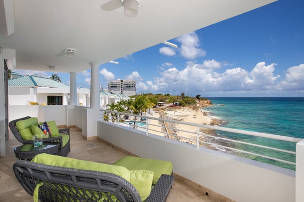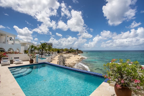 Etoile de Mer enjoys a privileged location at the water’s edge within the exclusive gated community of Shore Pointe. Here, you truly experience the best of both worlds: direct oceanfront living with the sparkling Caribbean Sea at your doorstep, and just a short stroll away, the vibrant marina village of Porto Cupecoy with its gourmet restaurants, boutique shops, and lively atmosphere. From the moment you enter through the villa’s elegant doorway, your gaze is drawn past the open living space and modern kitchen to the endless blues of Cupecoy Beach and the Caribbean horizon. The interiors flow effortlessly outdoors through wide wooden glass doors, opening onto a spacious terrace and sundeck. The covered terrace is designed for both dining and lounging, with a retractable awning offering a shady retreat when desired. Just beyond, your private pool invites refreshing dips under the sun, all while overlooking the golden sands of Cupecoy. As evening falls, this idyllic setting transforms, treating you to spectacular sunsets and, if you’re lucky, the island’s famous “green flash.” Inside, the villa’s contemporary kitchen is equipped with luxury appliances, while an indoor dining area offers the option for meals in air-conditioned comfort. A thoughtfully placed desk area ensures convenience for those needing to balance a little work with leisure. The four beautifully appointed bedrooms all feature king-size beds, en-suite spa-inspired bathrooms, and breathtaking sea views. The ground-floor suite includes a stunning bathroom with a soaking tub, while the three upstairs bedrooms each open onto private balconies overlooking the ocean - where waking up feels like stepping straight into paradise. Perfectly located, Etoile de Mer offers both seclusion and easy access to the island’s highlights. Within minutes, you can walk to Porto Cupecoy for fine dining and shopping, or take a short drive to discover Simpson Bay’s vibrant nightlife and the French capital of Marigot with its boutiques, galleries, and charming markets. And with Princess Juliana International Airport just ten minutes away, your escape to paradise begins the moment you arrive. Villa Etoile de Mer combines beachfront luxury, modern comfort, and unbeatable convenience: The ideal retreat for family or friends in St. Martin!