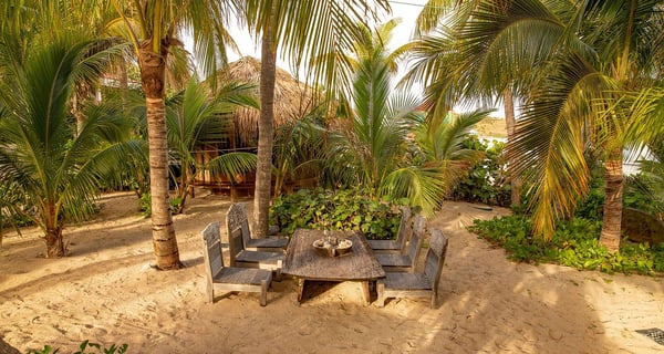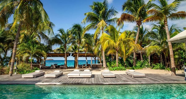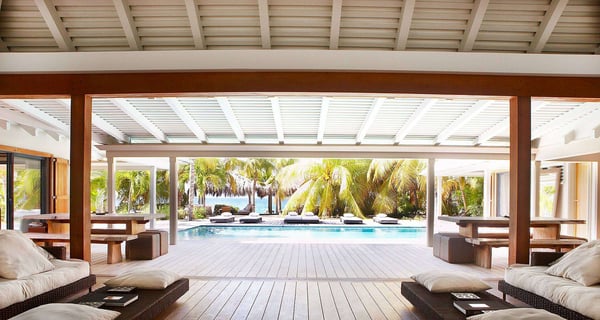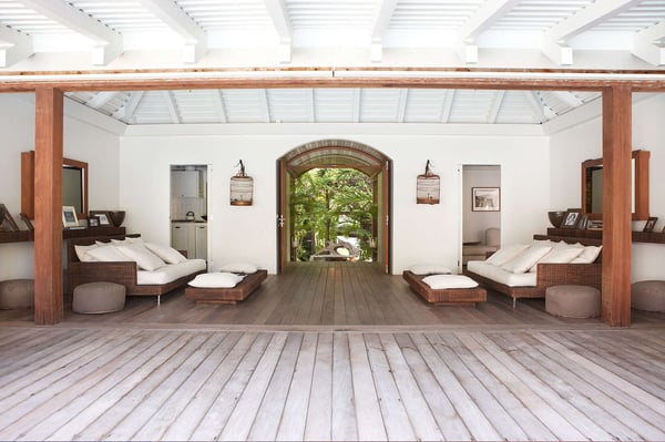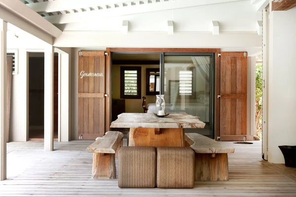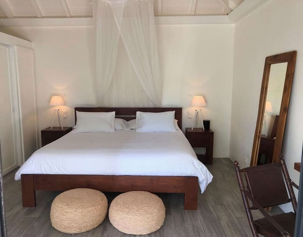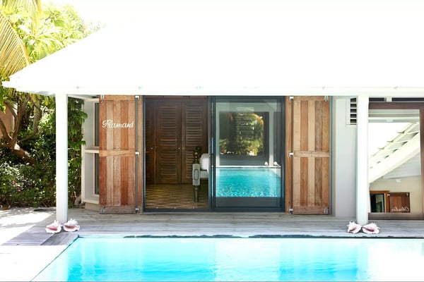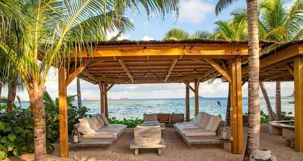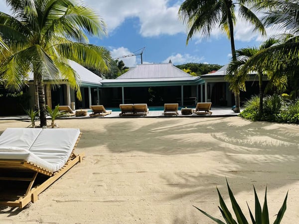 In Italian, the name Dei Sogni means “of dreams.” Which makes it a very fitting name for the new Villa Dei Sogni, right on Lorient Beach. This luxury rental property is one of a kind on St. Barth. It gives guests an opportunity to deeply relax and experience true beach living. The moment you step into the vacation home, you are mesmerized by the view of the blue Caribbean Sea and swaying palm trees. Chilled-out holiday mode kicks in right away. When you are in Villa Dei Sogni you truly feel as if you are living in a dream—or in your own not-so-small slice of heaven. You feel strongly connected with nature, and your batteries recharge. It is a perfect place to treat yourself to in-house massages and spa treatments. Of course, the Sibarth Concierge can arrange these and other pleasures for you. With six bedrooms, Villa Dei Sogni is well-suited to groups of friends or extended families. The house is also ideal for young children, as they can play safely in the sand within the property’s walls or directly on the beach. The dreamily appointed villa consists of an open-plan living room with an extensive kitchen in the back. Nicely tucked away, there is also a TV room, which can also serve as an office. If that is what you need, know that productivity just flows when you know the beach is just steps away. What better motivation is there? A good portion of Villa Dei Sogni is outdoor space. There, it is a celebration of having your feet in the sand in various areas to hang out. The alfresco kitchen/bar is a great spot for a leisurely breakfast or an early evening barbecue. There is a stone jacuzzi integrated in the garden; a good-sized swimming pool; an outdoor bathtub and shower; and various corners and tables for lounging, sunbathing, or simply playing in the sand. There is also a direct pathway to the beach and the Surf Shack in Lorient, a good place for children and adults to take surf lessons during their island vacation. The villa has six bedrooms with en-suite bathrooms. Each is named after one of St. Barth’s beloved beaches. Two of these bedrooms are on the right side of the pool, and a third is on the left side. Two more are in a separate bungalow next to the main building, and these can be connected. The sixth bedroom occupies a separate bungalow in the back with a small private deck and an outside kitchenette. All six have either king-size beds or twins that can be converted into kings. Its location in Lorient puts it within walking distance of Jojo Burger, grocery shops, a local fruit and vegetable market, a bakery, and one of St. Barth’s churches.