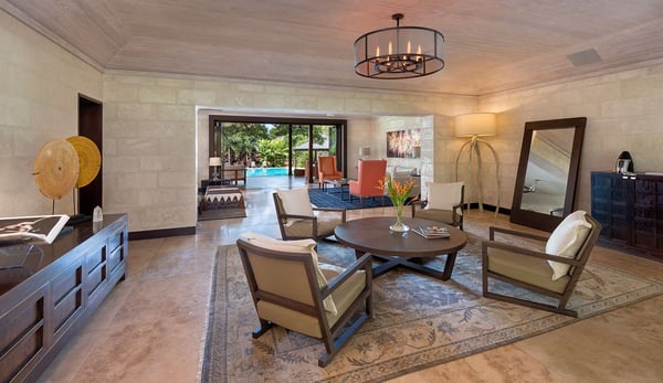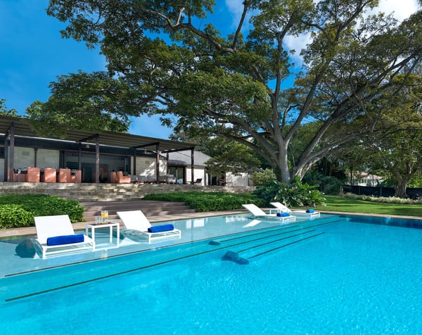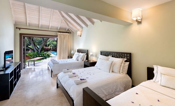 Guests staying within the world famous Sandy Lane Estate will have complimentary access to all Clubhouse facilities including beach chairs, umbrellas and tennis courts. Happy Trees is a magnificent four-bedroom villa tastefully furnished and set on over an acre of beautifully landscaped grounds including mature trees and tropical foliage. A successful blend of modern finishes and furnishings keeping comfort at the forefront, this home offers an open plan living and dining area as you enter, leading to a large, covered patio where an informal lounge area and dining are available for guests to enjoy. Eco-friendly aspects and cutting-edge technology are a trademark of Happy Trees, from the recycled roofing materials, led lighting throughout the house and garden, rainwater collected in underground tanks and used for irrigation, insulated sliding doors and solar water heaters, the owners have been mindful of the environment when creating this holiday getaway. Indoor/outdoor lighting and music systems allow you to light up the garden and inside the house at night when enjoying a cocktail with friends and family. Create the atmosphere you wish within different sections of the property with soft strains of classical music in the dining area, while contemporary sounds liven up the terrace or pool areas. Located in the Southern wing of the villa, the four air-conditioned bedrooms complete with ensuite bathrooms are equipped with uber-comfortable mattresses, high-quality linens and lots of pillows, flat-screen TVs, Apple TV, Wi-Fi, and Hair dryers, all providing luxurious element to your holiday. All four bedrooms look onto the garden which surrounds the property and with large glass doors, allowing the natural light in while you relax and enjoy the tropical scenery. If you prefer a later start to your day just close the drapes and stay beneath the covers. A study located off the master bedroom, a central TV room and a large, well-equipped kitchen complete this home. Enjoy a refreshing cocktail on the deck of the large infinity saltwater pool set amidst the lovely garden or lay on a lounge chair reading a book while you soak your toes in the sparkling water. A gazebo next to the pool complete with an icemaker offers a smaller table and chairs along with additional seating allowing you to enjoy the outdoors in comfort. An added advantage of staying on the Sandy Lane Estate is the Private Property Owners Beach Facility located beside the Sandy Lane Hotel, complete with your own cabana where you can store your personal items. Complimentary lounge chairs, sun umbrellas and changing rooms are also available for your use and a bar offering refreshments in a sheltered seating area makes for enjoyable days at the beach, including swimming in the sea and walks along the sand.