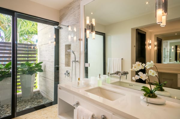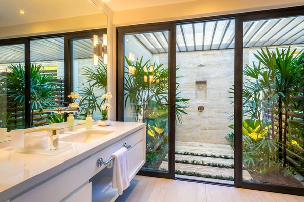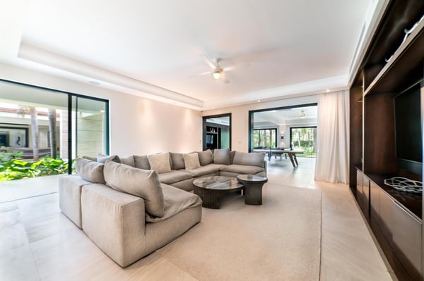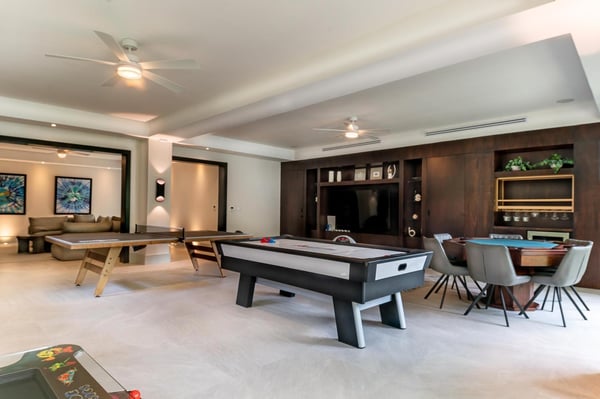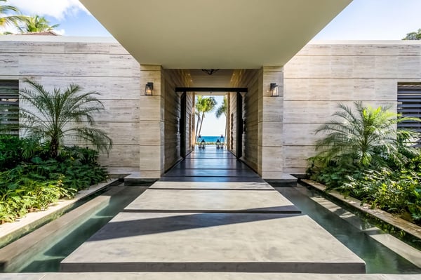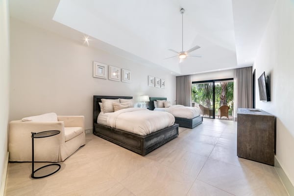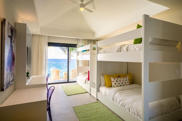 All guests must register with the Casa de Campo Concierge office, and for a small daily fee ($30 per adult per night & $15 per child per night), are granted access to resort areas and amenities. Casa de Campo Resort facilities and amenities include golf courses ($), the fitness centre ($), racquet center ($), restaurants ($) and bars ($). Contact Rental Escapes for more information about pricing. Casa Al Mare is a stunning villa perched on a 30-foot bluff overlooking the Caribbean Sea, offering 13,000 square feet of contemporary luxury and unparalleled comfort. This exceptional residence combines breathtaking views, exquisite amenities, and a dedicated staff ready to make your stay unforgettable. Whether you dream of lounging by your private infinity pool, soaking in a spacious 10-person Jacuzzi, dining alfresco under the stars, or exploring Casa de Campo’s vibrant nightlife and activities, Casa Al Mare delivers an extraordinary vacation experience. Each of the villa’s luxurious bedrooms is a haven of tranquility, featuring calming white and neutral tones accented with sophisticated Dominican-inspired touches. Every room is equipped with a private outdoor terrace, en-suite bathroom, cedar-lined closets, flat-screen TVs with digital cable, and high-speed Wi-Fi. Individually controlled air conditioning, ceiling fans, and shuttered windows that open to the Caribbean breezes ensure comfort tailored to your preference. Bathrooms are outfitted with plush linens, luxury toiletries, bathrobes, and hair dryers for a spa-like experience. The oceanfront master suite is a serene retreat, complete with a king-size bed, a sitting area, and a private terrace showcasing breathtaking sea views. The en-suite bathroom features a live green wall, a soaking tub, and an open shower that invites the ocean breeze. The second master suite offers a tropical escape with views of the pool and gardens, a king-size bed, private outdoor shower, and an elegant en-suite. Two oceanfront guest rooms each feature two queen beds, spacious en-suite bathrooms with soaking tubs, and indoor gardens. The upstairs master king bedroom boasts stunning ocean views, even from the glass-door shower. A charming kids’ room with full-sized bunk beds includes a tub, separate shower, and ample storage, while the upstairs garden-view guest room, also furnished with two queen beds, offers a peaceful retreat.