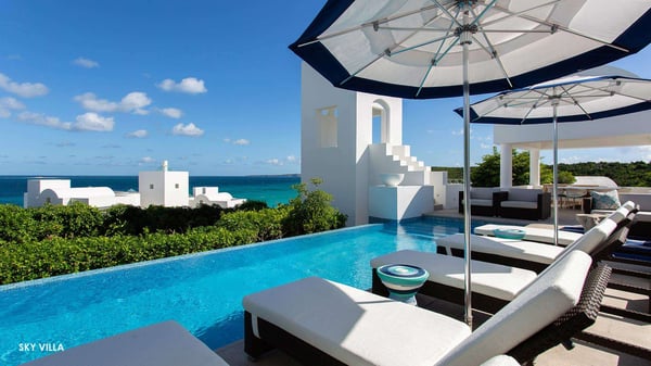 Inspired by cloudless skies, Sky Villa offers an elevated slice of island life with private stairs to the beach. Designed with a private tower, guests relish in the unobstructed panoramic views with an added sense of privacy. Lose yourself in a modern haven that blurs the lines between indoors and out. Melt into a shaded lounge chair or soak in the sun from your heavenly infinity pool - each of the Anguilla beachfront villas is equally luxurious, offering a secluded escape from the outside world.