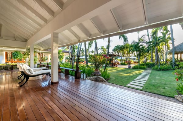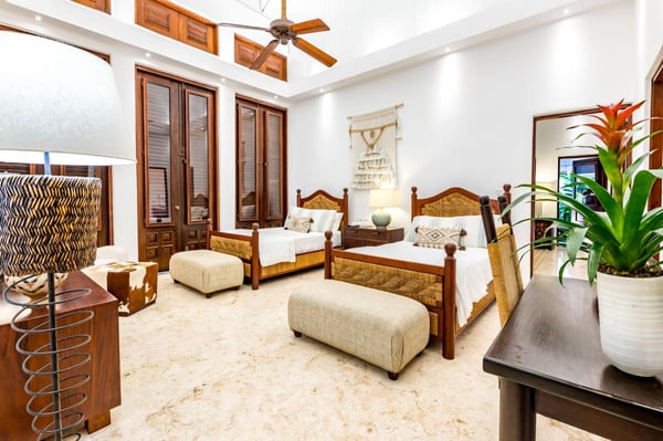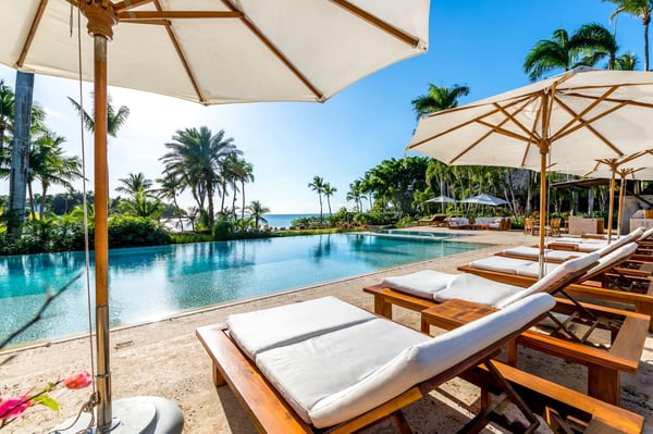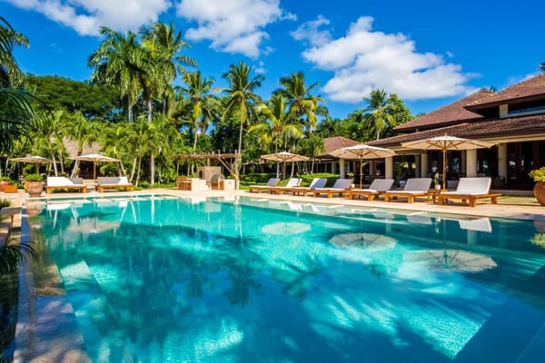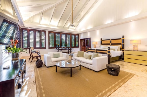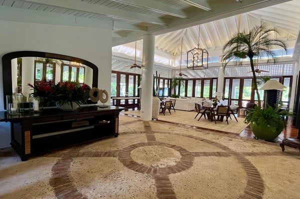 All guests must register with the Casa de Campo Concierge office, and for a small daily fee ($30 per adult per night & $15 per child per night), are granted access to resort areas and amenities. Casa de Campo Resort facilities and amenities include golf courses ($), the fitness centre ($), racquet center ($), restaurants ($) and bars ($). Contact Rental Escapes for more information about pricing. This nine-bedroom oceanfront villa is one of the most elegant and exclusive properties in Casa de Campo, offering unparalleled luxury and privacy. Nestled on over 9,500 square meters of lush, beautifully landscaped grounds, the villa boasts breathtaking views of Minitas Bay, Catalina Island, and the Caribbean Sea, creating an idyllic setting for unforgettable gatherings. Spanning more than 1,500 square meters, the villa is thoughtfully designed with three living pavilions that seamlessly blend indoor and outdoor living. The layout includes two master suites, eight guest suites, and a large children’s bedroom equipped with bunk beds, twin beds, and a cozy play area for board and video games. High ceilings and spacious living and dining areas enhance the villa’s grandeur, while a state-of-the-art kitchen and an exceptional chef and staff ensure every meal is a delight. Guests can enjoy a host of amenities, including a private beach, a Pilates-equipped gym, a ping pong table, a pickleball court, and a volleyball court. With its expansive grounds, luxurious accommodations, and spectacular views, this villa is the ultimate retreat for large families or groups seeking a sophisticated and serene Caribbean escape.