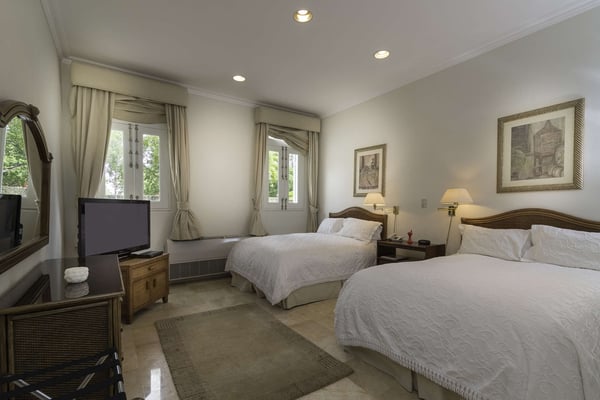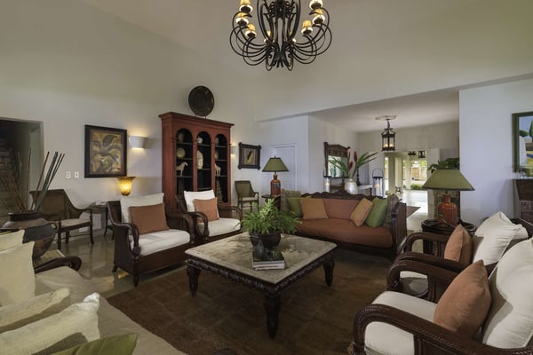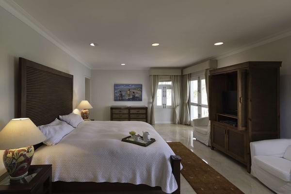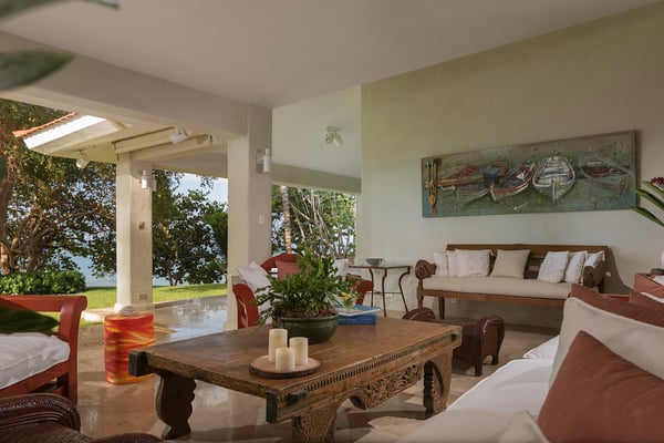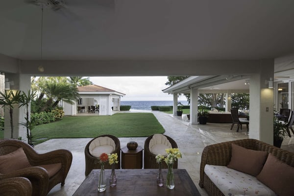 All guests must register with the Casa de Campo Concierge office, and for a small daily fee ($30 per adult per night & $15 per child per night), are granted access to resort areas and amenities. Casa de Campo Resort facilities and amenities include golf courses ($), the fitness centre ($), racquet center ($), restaurants ($) and bars ($). Contact Rental Escapes for more information about pricing. Belle Vue is a stunning Caribbean-style oceanfront villa located in the heart of Casa de Campo. Just minutes from the Marina and a short golf cart ride to Playa Minitas, this villa perfectly combines accessibility and tranquility for an unforgettable stay. Upon entering Belle Vue, you are welcomed into spacious and elegant social areas. The indoor living room provides a comfortable retreat, seamlessly connecting to a covered veranda that features three distinct seating areas. From here, you can soak in the ocean views, enjoy a good book, or sip cocktails prepared by the attentive staff. The outdoor dining terrace offers a picturesque setting overlooking the garden and ocean, with seating for up to sixteen guests—perfect for any meal, from leisurely breakfasts to memorable dinners. The villa’s bedrooms are thoughtfully designed for comfort and privacy, each featuring an en-suite bathroom, air conditioning, a walk-in closet, TV, telephone, and a safe. These amenities ensure a relaxing and worry-free stay, with everything you need at your fingertips. Surrounded by lush tropical gardens, Belle Vue offers a serene escape, while its proximity to Playa Minitas provides easy access to one of Casa de Campo’s most beautiful beaches.