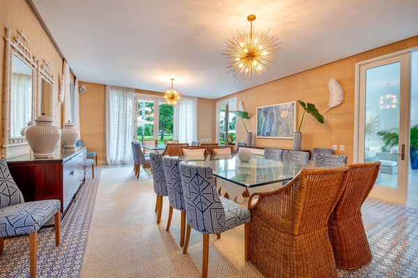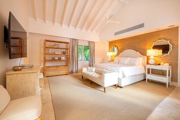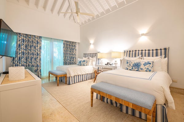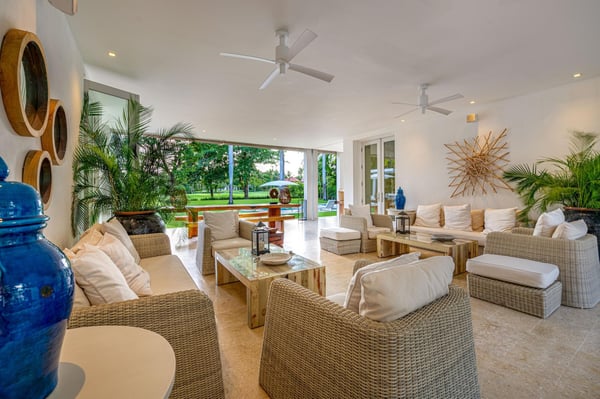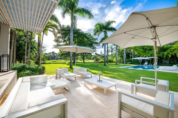 All guests must register with the Casa de Campo Concierge office, and for a small daily fee ($30 per adult per night & $15 per child per night), are granted access to resort areas and amenities. Casa de Campo Resort facilities and amenities include golf courses ($), the fitness centre ($), racquet center ($), restaurants ($) and bars ($). Contact Rental Escapes for more information about pricing. This stunning seven-bedroom villa, designed by a renowned local interior designer, combines modern elegance with luxurious comfort to create an inviting atmosphere for an unforgettable stay. Overlooking the La Romana Country Club Golf Course, the villa features clean, open living and dining areas that flow seamlessly into the outdoor spaces, offering breathtaking views and plenty of room to relax or entertain. The spacious living room is perfect for gathering with family and friends, while the formal dining room, seating up to 20 guests, is ideal for hosting special occasions. The outdoor terrace includes a unique wooden dining table for eight, providing a charming spot for al fresco meals. A study with a large LCD TV and surround sound system adds to the villa’s amenities. The master bedroom, located on the second floor, boasts a private study and luxurious design. The six additional guest bedrooms are equally spacious, each with its own ensuite bathroom and air conditioning for maximum comfort. The fully equipped kitchen caters to guests who enjoy cooking, while the outdoor gazebo offers a bar, seating area, and BBQ facilities—perfect for relaxing and dining in the fresh air. With its thoughtful design and premium amenities, this villa is the ultimate retreat for relaxation, entertaining, and making lasting memories.