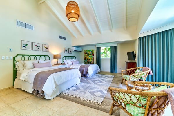 All guests must register with the Casa de Campo Concierge office, and for a small daily fee ($30 per adult per night & $15 per child per night), are granted access to resort areas and amenities. Casa de Campo Resort facilities and amenities include golf courses ($), the fitness centre ($), racquet center ($), restaurants ($) and bars ($). Contact Rental Escapes for more information about pricing. Villa Oasis is a stunning retreat in the exclusive Punta Minitas neighborhood, offering breathtaking views of Minitas Beach and Minitas Bay. Designed by renowned Italian architect Gianfranco Fini, whose work includes Casa de Campo’s iconic marina, this villa embodies elegance, modernity, and timeless beauty. With eight thoughtfully designed bedrooms, Villa Oasis provides a perfect balance of privacy and togetherness. The bedrooms, adorned in soothing tones, create a serene atmosphere. Two luxurious master suites offer distinctive experiences: one on the top floor with private balconies and sweeping views, and the other on the ground level for added convenience. The remaining six guest rooms, split between the upper and lower floors, each feature en-suite bathrooms and walk-in closets, ensuring every guest enjoys comfort and privacy. The villa’s central living area is spacious and inviting, perfect for family gatherings and relaxation. A dedicated entertainment area offers fun for both adults and children, while the game room, complete with a pool table, adds to the villa’s recreational appeal. For quieter moments, the family room provides a cozy space to unwind and connect. Villa Oasis seamlessly blends indoor and outdoor living, with its design harnessing the refreshing ocean breeze. Guests can relax on the private deck or take advantage of the villa’s exclusive small private beach, offering an intimate connection to the stunning surroundings. Combining elegant design with exceptional amenities, Villa Oasis promises an unforgettable escape in Casa de Campo.