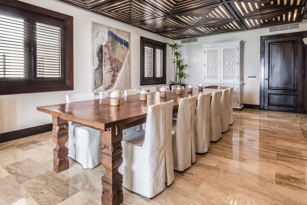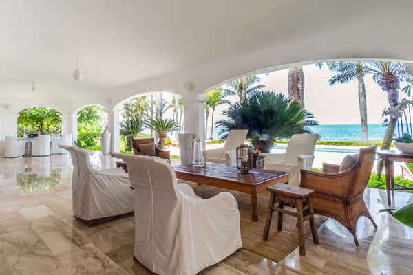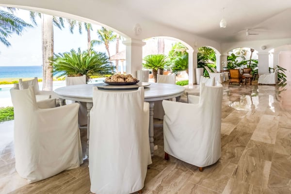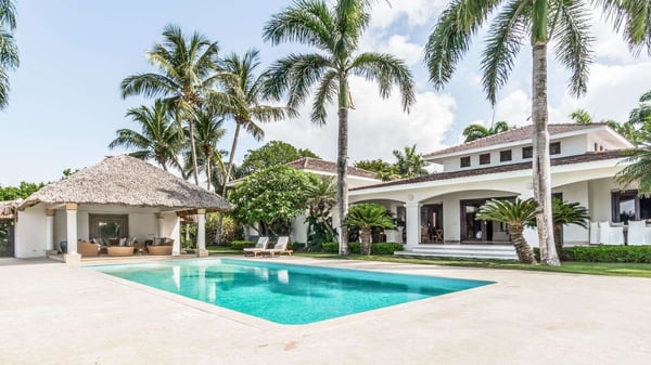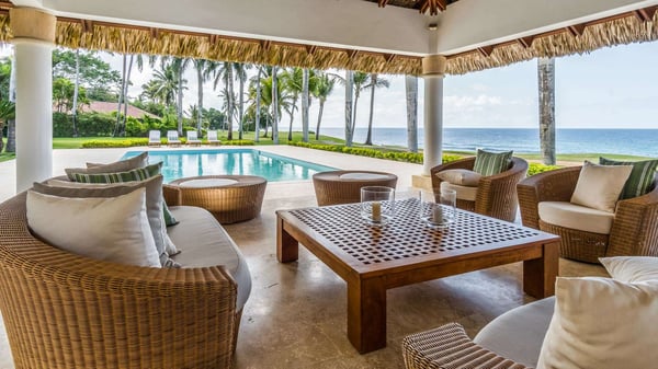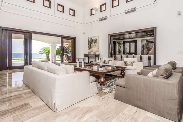 All guests must register with the Casa de Campo Concierge office, and for a small daily fee ($30 per adult per night & $15 per child per night), are granted access to resort areas and amenities. Casa de Campo Resort facilities and amenities include golf courses ($), the fitness centre ($), racquet center ($), restaurants ($) and bars ($). Contact Rental Escapes for more information about pricing. Experience the ultimate oceanside getaway in this luxurious four-bedroom villa, perfectly situated along hole number eight of the renowned Teeth of the Dog golf course. With spectacular ocean views serving as your daily backdrop, this villa offers an unparalleled blend of elegance and tranquility. Designed for comfort and style, the villa features beautifully appointed living spaces where every detail has been thoughtfully curated for your enjoyment. Three of the bedrooms boast breathtaking ocean views, making this retreat a true haven for relaxation and indulgence.