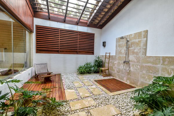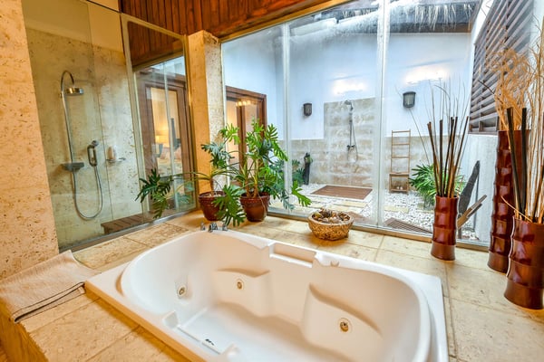| Bathroom 1 | Primary | full | Toilet, Shower, Whirlpool/Hot tub, Outdoor Shower | En-suite. |