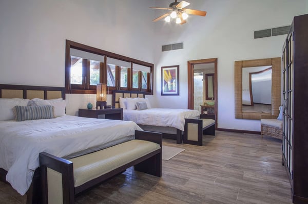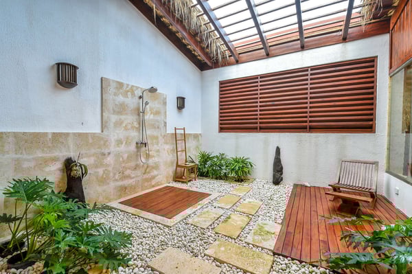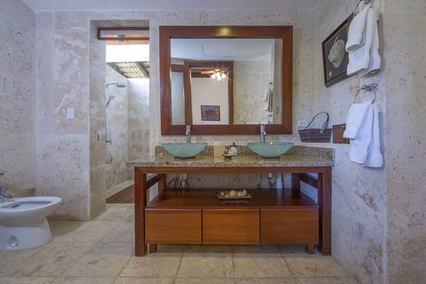 All guests must register with the Casa de Campo Concierge office, and for a small daily fee ($30 per adult per night & $15 per child per night), are granted access to resort areas and amenities. Casa de Campo Resort facilities and amenities include golf courses ($), the fitness centre ($), racquet center ($), restaurants ($) and bars ($). Contact Rental Escapes for more information about pricing. Bali Seven is a stunning seven-bedroom villa perfectly located just steps from Minitas Beach. Combining modern sophistication with tranquil design, this villa offers an unparalleled experience of luxury and relaxation. Upon entering, you’re welcomed by two serene zen water features that set the tone for the villa’s peaceful ambiance. The bedrooms are thoughtfully arranged on either side of the villa to ensure privacy and comfort. Two expansive master suites feature spacious bathrooms with private courtyards and outdoor showers, connecting guests to the natural surroundings. One master suite offers internal access to an adjacent room, ideal for families seeking closeness. In addition to three well-appointed guest bedrooms, Bali Seven boasts two new master suites by the pool and garden. These suites provide a unique blend of indoor and outdoor living, offering a luxurious retreat with direct access to the lush outdoor spaces. The villa’s open-concept design creates a seamless flow between the modern interiors and the stunning outdoor areas. Guests can unwind by the pool, lounge in the inviting living spaces, or enjoy meals prepared in the sleek, fully equipped kitchen—all while feeling harmoniously connected to nature. With its prime location near Minitas Beach, Bali Seven ensures easy access to pristine sands and turquoise waters, making it the perfect haven for an unforgettable Caribbean getaway.