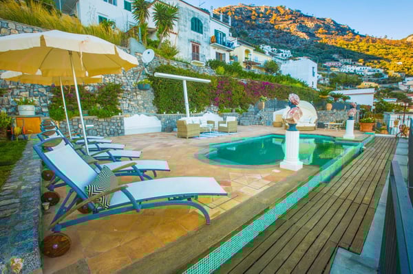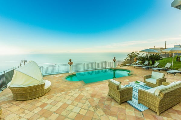 It's no wonder that the Amalfi Coast has become one of the main bucket-list destinations: Italy's most scenic stretch of coastline boasts characteristic corniche winding roads, colourful terraced villages, striking sunsets and fascinating views over the crystal waters. Between Positano and Amalfi, Praiano is a very scenic and majestically situated village, in the ideal location to explore the coast. In Praiano's town center, Villa Roxy is the intimate hideaway for those seeking comfortable interiors and expansive open-air space. Everything one wants to experience coastal living is here, and then some…among them, a swimming pool – a rarity for a villa of such size – that offers stunning panoramic views!