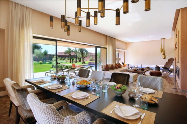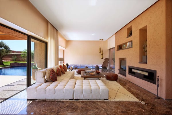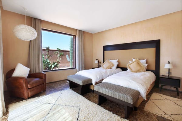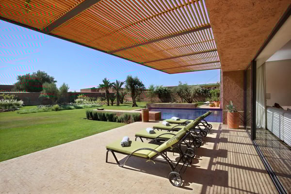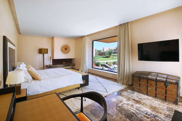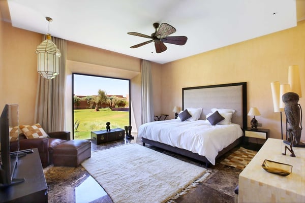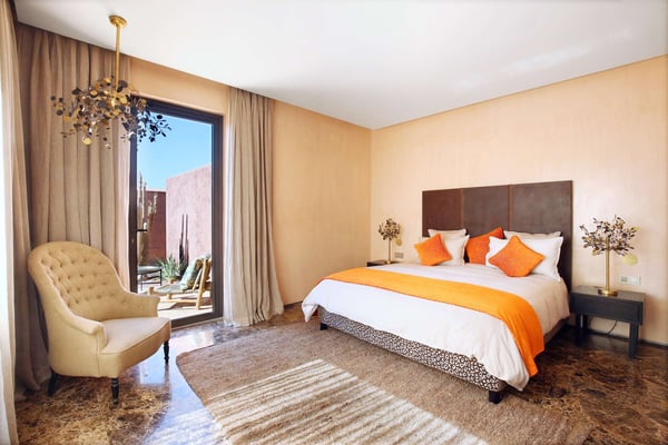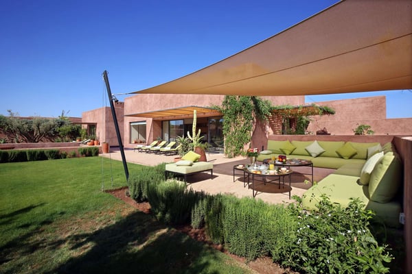 Located on the famous Royal Palm Fairmont Estate, surrounded by ancient olive and orange trees, stands Tamilla, a private villa ideally situated and perfectly integrated into the Moroccan landscape with its magical gardens, four double bedrooms with en-suite bathrooms, and a heated swimming pool. The villa comes fully staffed with an excellent cook, housekeeping services, and 24-hour security.
