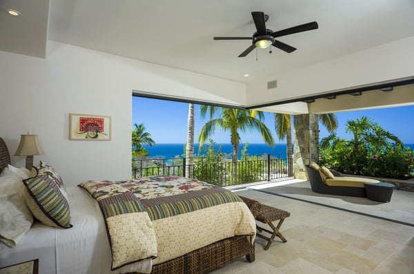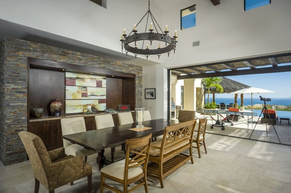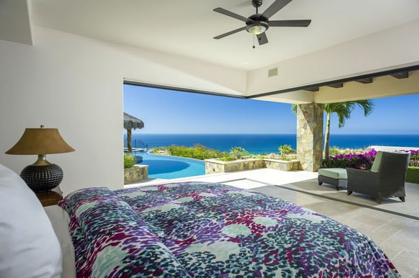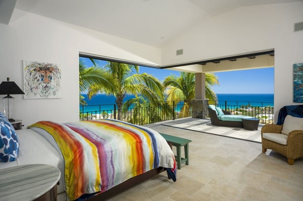 For a small fee, guests will have access to beach club facilities at Fundadores Beach Club including the luxury pool, fitness centre, spa and restaurants. Located in the gated community of Los Fundadores in Puerto Los Cabos, Casa de Suenos is the perfect luxury property for you and your guests! Five minutes from the beach, this villa also comes with easy access to many amenities, such as golf, fishing, water sports, restaurants and more. Enjoy stunning panoramic views of the Sea of Cortez from Casa de Suenos' stunning terrace, which includes an infinity pool, hot tub, fire pit and plenty of seating for everyone to unwind and relax on. Savour delicious meals made with the professional appliances found in the gourmet kitchen of Casa de Suenos! Eat along the breakfast bar or have a seat in the open-concept formal dining and living area that opens out onto the terrace. Large sliding glass doors allow as much natural light as possible to enter each of the five bedrooms at Casa de Suenos. Plush pillows and patterned linens give each bedroom its own unique and individual look. With the inclusion of six-and-a-half bathrooms, there is more than enough space for each guest to spend as much time as they need to get ready for a day of exploring Cabo! Plenty of entertainment space is found throughout Casa de Suenos, from the kitchen and living area to the outdoor terrace and garden, to the villa's cozy media room. Casa de Suenos is everything you and your friends and family will want in a villa for a spectacular stay in Cabo!