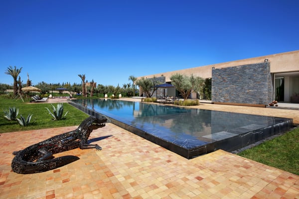 Villa Sidi is a subtle blend of contemporary architecture and Moroccan craftsmanship. Designed by a young Moroccan architect who incorporates his love of raw material and clean lines with traditional Moroccan objects. The villa boasts six bedrooms with en-suite bathrooms, a heated pool, and a private park. Sidi comes fully staffed with an excellent cook, housekeeping services, and 24 hour security.