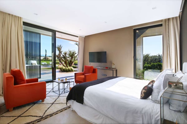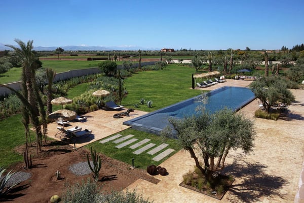 25 minutes from international airport and Marrakesh city center. 10 minutes from Golf Palm Ourika. 15 minutes from Golf Royal, Amelkis, and Al Maaden. 25 minutes from Golf Royal Palm/Samanah.