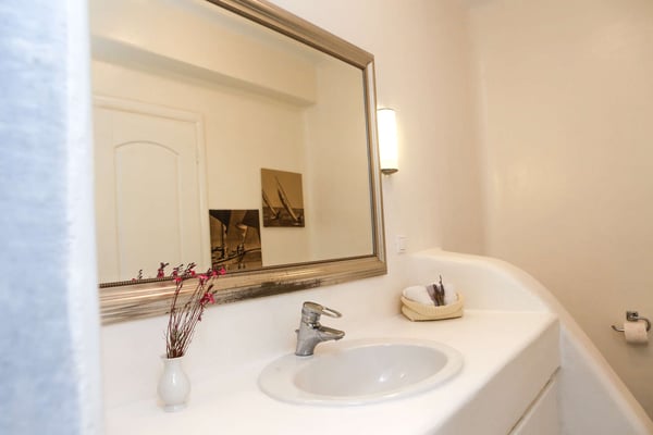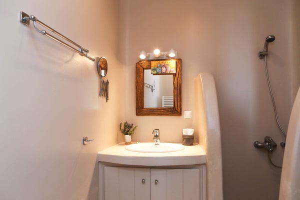 Villa Sunshine is a beautiful six-bedroom property located in the area of Choulakia with an amazing sea view! The property consists of the main house with four bedrooms and two independent guest houses, beautiful outdoor areas, a private pool, and a verdant garden with olive trees. It is located on the highest point of a villa complex. The villa is formed in three levels, the lower level consists of a living room, three bedrooms, three bathrooms, and has direct access to the garden. On the ground floor (pool level) there is a fully equipped with modern appliances open-spaced kitchen, dining area, guest WC, living room and an outdoor pergola-covered dining area. The primary bedroom is located on the first floor, with an amazing sea view and access to an outdoor sitting area. Villa Sunshine also has two independent guest-houses on the lower level, both of them with direct access to the garden.