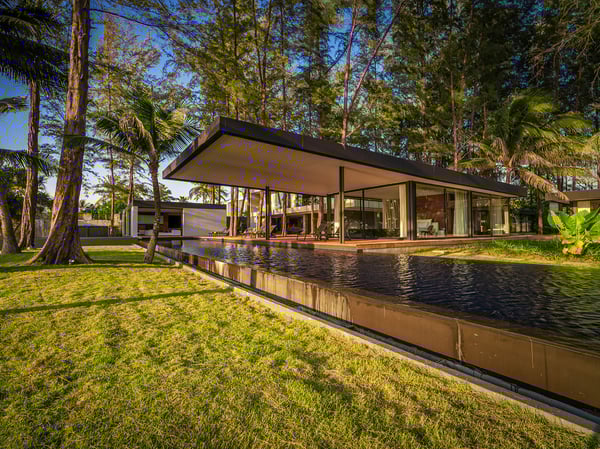 A beachfront holiday home nestled amongst towering Casuarina trees and featuring sweeping views of the Andaman Sea, the contemporary Grand Villa Noi is an architectural masterpiece. The sleek, modern villa offers the utmost privacy in a lush, tropical setting. The luxurious five-bedroom villa is the perfect holiday retreat for families and groups of friends. The spacious accommodation offers open plan interiors and a wealth of full-services such as private chef, personal butler and driver. In this modern five-bedroom villa, floor-to-ceiling glass sliding doors provide exceptional sea views and allow for ample natural light to flood each room of the villa. Minimalist decor enhances the overall openness of the rooms, adding to the contemporary vibe of the accommodation. Comfortable king beds ensure a good night’s sleep, and opening the floor-to-ceiling glass doors allows for a light breeze to flow easily through the villa. Grand Villa Noi has direct access to the soft sands of Natai Beach, an expansive stretch of beach with turquoise waters and a tranquil setting. Once you have splashed in the waves of the Andaman Sea, retreat back to Grand Villa Noi to enjoy the refreshing infinity swimming pool. Set amongst a verdant garden and surrounded by a timber pool deck, the infinity swimming pool provides an idyllic setting to bathe in the sun, take a dip in the pool or enjoy relaxing on one of the sun loungers under the shade of the trees. With a prime location north of Phuket International Airport, Grand Villa Noi presents the perfect beachfront holiday home escape. This beautiful five-bedroom villa encompasses all of the amenities needed to ensure an exquisite, comfortable stay in a luxurious villa on an unspoilt stretch of beach in southern Thailand.