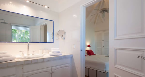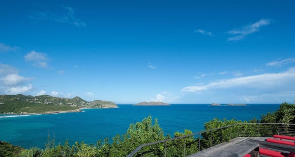 With a wonderful panoramic view over St Jean Bay, Villa Ker Anna is a colour-filled dream both inside and out. The blue Atlantic Ocean stretches off toward Sint Maarten on the horizon, the green leaves of palm and guaiac sway in the breeze, and the interior of this delightful home is decorated in bright Caribbean hues. The main living area opens onto the covered terrace and sun-drenched pool and deck. Villa Ker Ana's three bedrooms all have private en-suite baths, and all enjoy the magnificent view. This lovely property is the perfect spot for families as well as groups of friends. Plentiful and comfortable seating makes it easy to find a place to relax, whether you are looking for a shady place to read or a chaise in the sun. The large deck and refreshing pool enjoy full sunlight for most of the day, and the western view provides wonderful sunsets year-round.