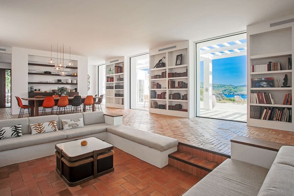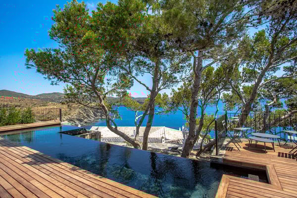 Situated in the North of the Costa Brava, this exceptional seafront villa is fully air-conditioned, and nestled at the border of the charming village of Cadaques within the National Park of Cap de Creus. Dali is a nine-bedroom villa overlooking the Mediterranean Sea and can accommodate up to 20 guests. Exceptionally located, it offers direct access to the sea and full privacy as well as a heated swimming pool. Salvador Dali’s personal manager, the extraordinary ‘Captain Moore’, lived in the house for more than 20 years and welcomed many international artists and intellectuals. The spacious terraced park hides a tiny little chapel and statues in remembrance of Dali and gives stunning views of the Natural Park of Cape de Creus, S’alqueria, and Port Lligat Beach. Villa Dali is a one-story villa perched on top of a rocky foundation, comprising two distinct sections: the main house and four separate exterior bedrooms, each accessible independently. These spaces are seamlessly linked by charming patios and stone stairways. This villa combines modernity, refinement, and simplicity along with a high level of comfort and technology. It was entirely renovated in 2017/2018 by a Spanish architect and French interior designer. Extending over 550m²/ Ground over 10 000m2, Villa Dali offers spacious living areas with nine bedrooms, most of which offer spectacular sea views, Mediterranean-style patios, and large terraces. Registration Number: 2170202530330E2D
