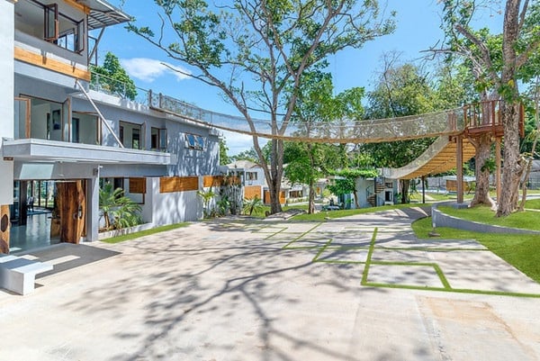 • Rope bridge connects upper deck to gym and bird watching platform
