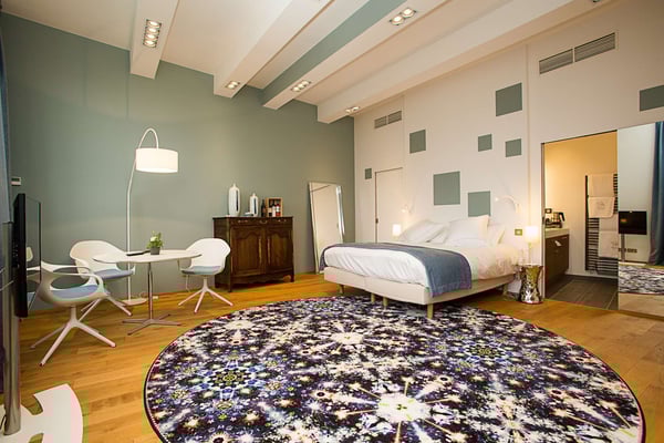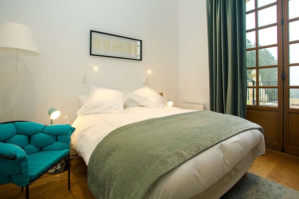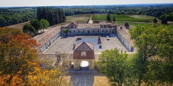 Located north of Bordeaux, on right bank, near Saint Emilion, this elegant fifteenth-century chartreuse stands at the end of a majestic driveway lined with hundred-year-old trees in the middle of fenced 43 hectares of vineyards with 11 luxurious bedrooms, 11 bathrooms, A/C, lift, two heated swimming pools. Original and Prestigious decoration, full board included, and staff on site.