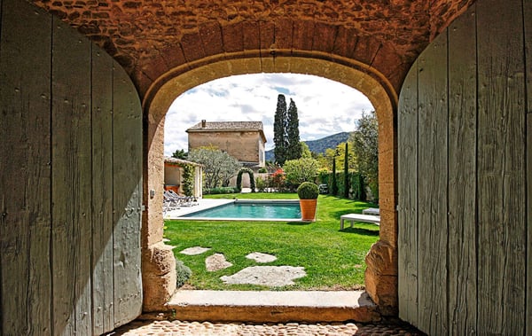 This restored property, Les 2 Maisons, includes a main house and guest house accommodating 10 guests with its five air-conditioned en-suite bedrooms, Provencal garden, and heated swimming pool, all in the heart of a small village at the foot of the Luberon in Provence.