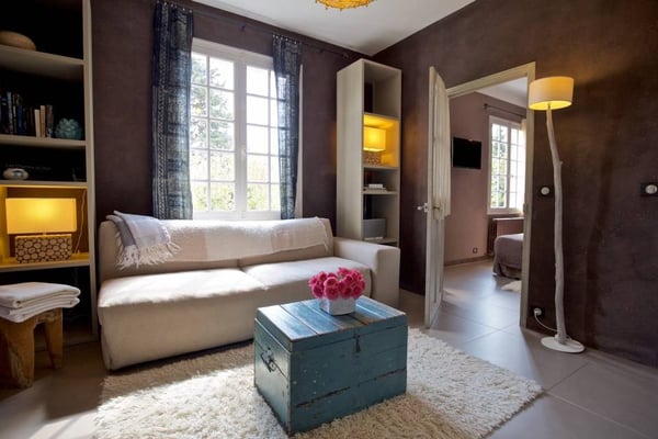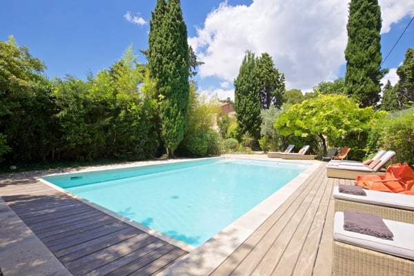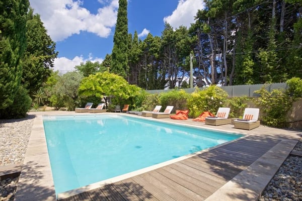 Mon Paradou is a very original and modern mas for 8 or 12 people in the heart of the Alpilles near Les-Baux-de-Provence. It is a Provencal mas of 400 sqm decorated with original taste by a professional decorator; each room has a special atmosphere. The mas is fully air-conditioned and has two swimming pools (one indoor, one outdoor heated) and a home cinema.