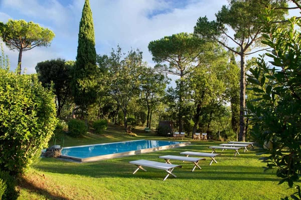 Villa Leila, an exquisitely designed luxury property, is a typical Tuscan patrician villa located in the celebrated Chianti area. The villa is positioned high atop a hill on a large estate making it an ideal retreat for privacy, and yet, the city of Florence is easily reached in just twenty-five minutes. The villa interiors' understated elegance and great style have the ability to evoke Old World charm and to create a warm and inviting atmosphere, while the outside features, such as the ample verdant park, private heated swimming pool, tennis court, bocce court and futsal field, add value for guests who love outdoors living and active vacations. CIN: IT048038B48CY4VDZP