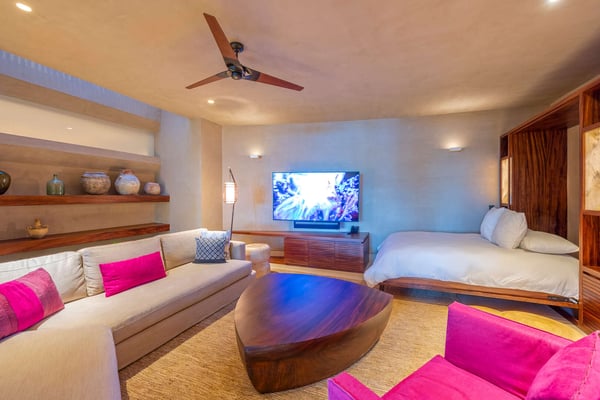 Construction is taking place nearby and may create some noise issues. Contact a villa specialist for more information about how this may impact your stay. The Premier Golf Membership grants access to Pacifico Golf Course ($), Bahia Golf Course ($), the Tennis Centre ($), the Fitness Center ($), El Surf Club based on min. consumption fee ($), St.Regis Beach Club based on availability and min. consumption fee ($), Pacifico Beach Club, Sufí Ocean Club and Kupuri Beach Club. Contact one of our Villa Specialists for more information. Estate Taurus, surrounded by vegetation and impressive ocean views, is located in the Punta Mita peninsula. The luxurious private residence comes with all the comforts desired to have an unforgettable time, as it combines modern design with all the technology and amenities needed to make your stay an amazing experience.