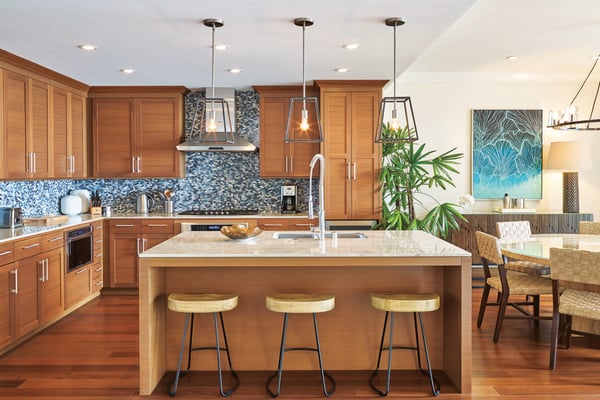 The Hawaiian word “kaiholo” means the movement of the sea. In each Kaiholo vacation residence, the seamless transitions from indoor to outdoor living and lanais that extend to the ocean’s edge. Kaiholo residences are three or four bedrooms, with up to four lanais and 3,100 square feet of living space. Throughout the sea-inspired interiors, you will find shades of blue and granular movement in the natural stone tiles and surface materials. Neutral tones set the stage for breathtaking panoramic ocean and mountain views, creating an incomparable experience. You won’t know where the inside ends and nature begins.