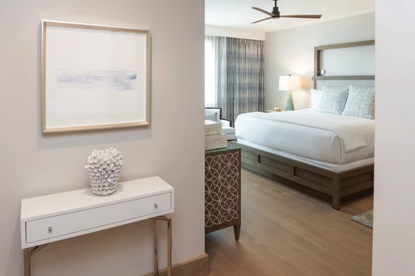 The Hawaiian word "maliula" means enveloping in Aloha. Our Maliula vacation rentals embody a peaceful abode surrounded by nature. The interior is relaxing with greyed woods and textured white oak flooring and millwork with elegant touches of silvered iridescent stone tile and glass, shell-like tile. Each Maliula vacation rental features multiple lanais and peaceful views of the mountains, gardens, Maliula pool, Hokuala Estate, or the Pacific Ocean. The Maliula Residences are located in the heart of the amenities at Timbers Kauai. Timbers Spa, Timbers Fitness Center, Tykes Club, and the popular Maliula pool are all just steps away from your residence. The floor-to-ceiling sliding glass doors blur the line between indoors and out. Inside, you’ll find an exceptional level of finish, with thoughtfully designed custom cabinetry, natural stone vanities, and a beautifully appointed kitchen with Thermador and Bosch appliances.