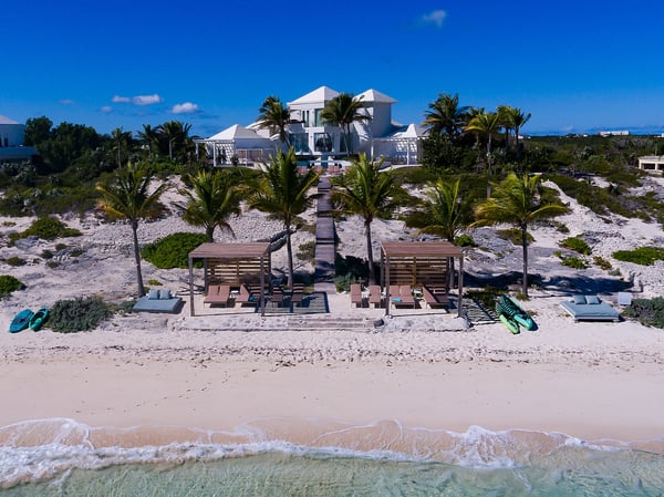 Pearl West is one of three exclusive villas within the Pearls of Long Bay Estate. Located on the stunning and increasingly popular Long Bay beach and only a few steps away from the beautiful turquoise waters of the Turks and Caicos Islands. Famous for its refreshing winds, Long Bay beach is an ideal spot for any water activities such as jet skis, paddle-boarding, kayaking or kite-boarding. Our beautiful silky smooth sandy beach is perfect for children making sandcastles, parents enjoying their favourite book or just going for a peaceful walk during sunset. Alternatively, you can spend your vacation soaking in one of our pools with our signature cocktail and not a thing to worry about. The grounds at Pearl West include two swimming pools, a children’s wading pool and a hot tub. One of the tough decisions you will face is whether you want your lunch served in our air-conditioned villa, snacks at the pool bar, BBQ on the beach or dinner in our alfresco dining area. A bonfire complimented with hot dogs and marshmallows on the beach is also an option great for families with children. The choice is yours. Pearl West offers guests uninterrupted views of the turquoise waters spanning the Caicos Banks while marrying contemporary design with Caribbean barefoot luxury. This stunning home seamlessly harmonizes the idea of indoor/outdoor living with beautiful landscaping, decks and lagoons throughout for 12,000 square feet of sophisticated living. High vaulted ceilings and plenty of overhead fans keep the feelings airy and breezy. Eight exquisite bedroom suites accommodate up to twenty guests at this non-smoking villa. Access to the outdoors is a breeze! All of the suites offer dual vanities, Smart TV’s, Cable, Netflix and Apple TV. Rest easy as the sound of the ocean waves smooth you to sleep. Pearl West shares first-class amenities reminiscent of a five-star resort with the other two villas at the estate, Pearl East and Lidija’s House. Depending on your preferences you can go for a fantastic workout at our professional 1,100-square-foot gym, play a match of tennis or simply enjoy a soothing massage either in our alfresco spa or within your villa for the maximum amount of privacy and relaxation. Whether you are in for a party we can arrange a vast array of entertainment for you or if you would like to finish your day watching a movie with your loved ones you can do so in our indoor cinema room. The Pearls of Long Bay will make sure that everyone will have a trip of a lifetime as we tailor each stay individually according to your wishes and preferences. Be it a honeymoon, corporate event, wedding or a simple family retreat we have something in store for every occasion.