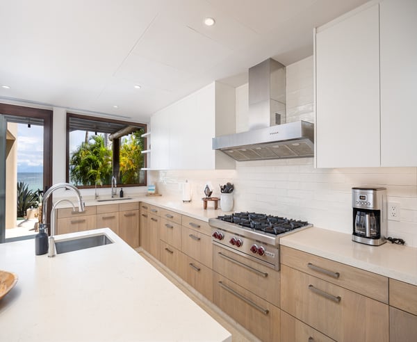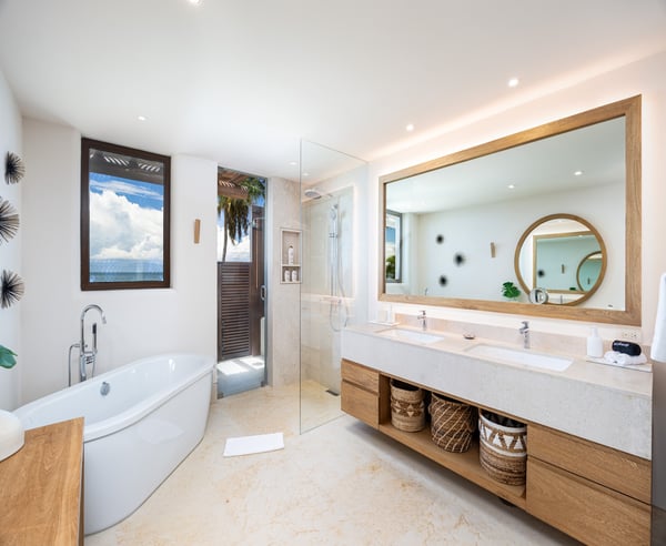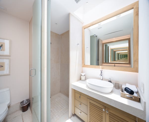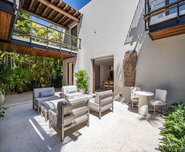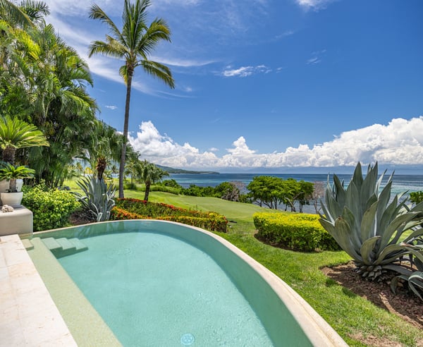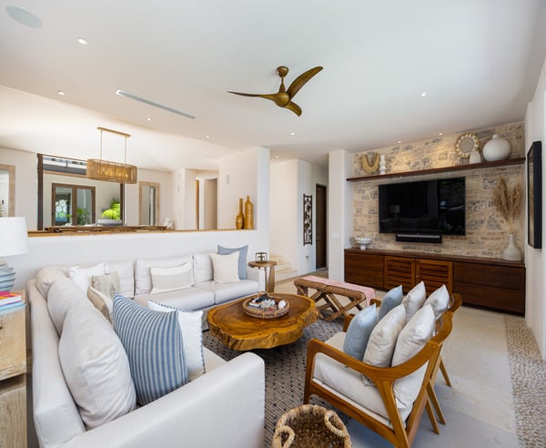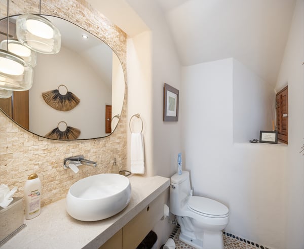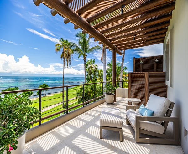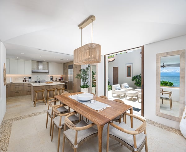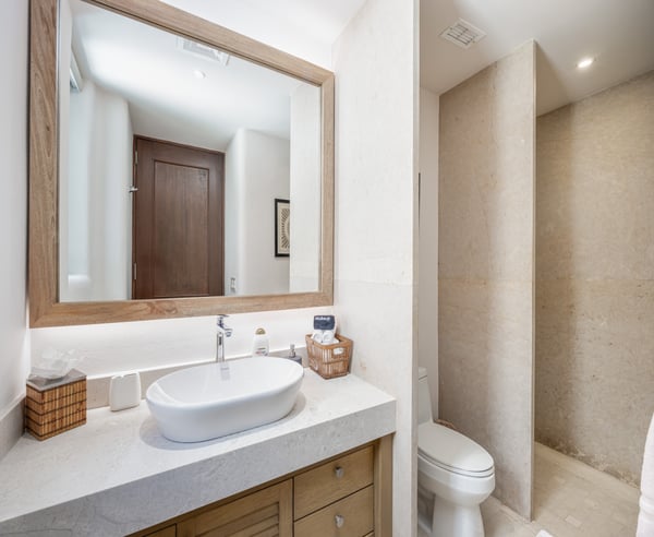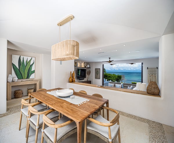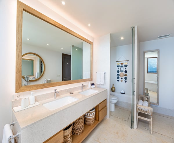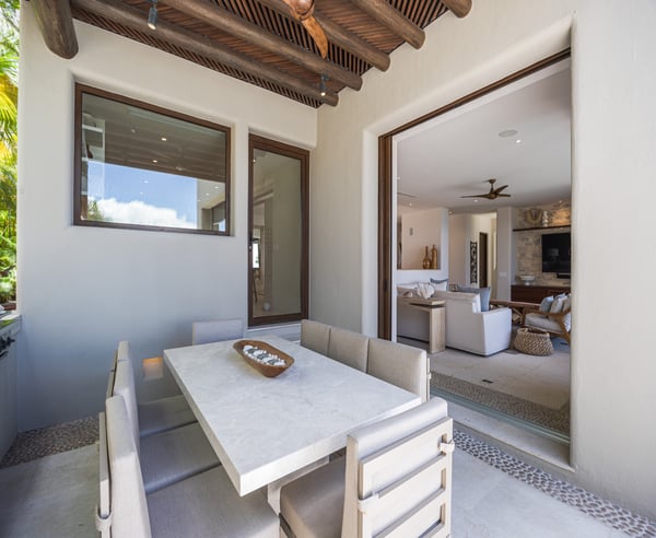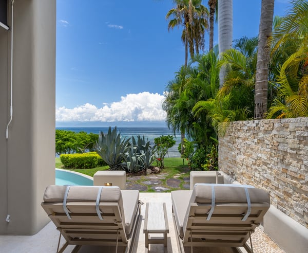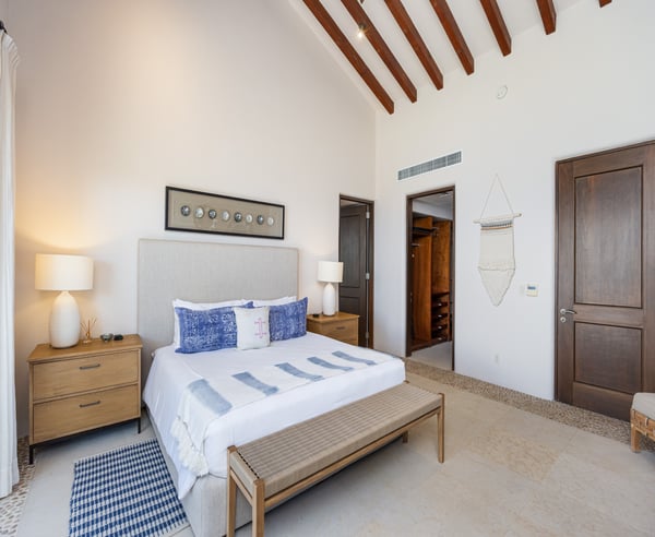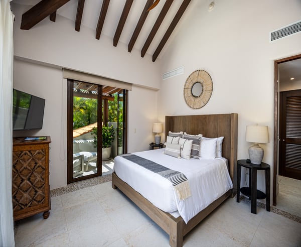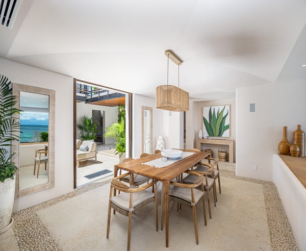 Construction is taking place nearby and may create some noise issues. Contact a Rental Escapes villa specialist for more information about how this may impact your stay. The Premier Golf Membership grants access to Pacifico Golf Course ($), Bahia Golf Course ($), the Tennis Centre ($), the Fitness Center ($), El Surf Club based on min. consumption fee ($), St.Regis Beach Club based on availability and min. consumption fee ($), Pacifico Beach Club, Sufí Ocean Club and Kupuri Beach Club. Contact one of our Villa Specialists for more information. Indulge every sense at Casa Bahia. This stunning vacation rental boasts an oceanfront location in Punta Mita, where you can take in water views from nearly every room, listen to the waves lapping at the shore and bask in the warm sunshine. Included cook service will fill your holiday with tempting smells and tastes, and four bedrooms means you can invite up to ten friends or family members to join. Your holiday at Casa Bahia includes daily housekeeping as well as cook service at breakfast or lunch. When you’re not trying out local specialties, you can sunbathe by the infinity pool, sip refreshments from the outdoor wet bar or whip up something on the gas barbecue to serve at the al-fresco dining table. There’s also an Apple TV, sound system and Wi-Fi for your evening entertainment. Casa Bahia has more than 7,000 square feet of space, spread out over two levels. It’s designed to make the most of its gorgeous setting, so you can look out over the bay, the Sierra Madre mountains and the Marietas Islands from nearly anywhere in the house. At its heart is an open-concept great room with a sitting area just off the terrace, a dining area up a few steps and a fully equipped kitchen with a breakfast bar. This luxury property has three bedrooms with king beds and en-suite bathrooms, including a primary suite with its own private terrace. It also has one bedroom with two queen beds and an en-suite bathroom.