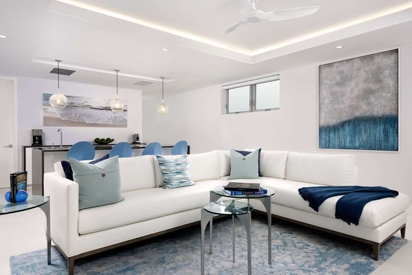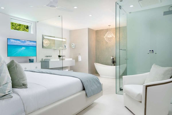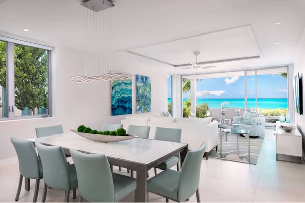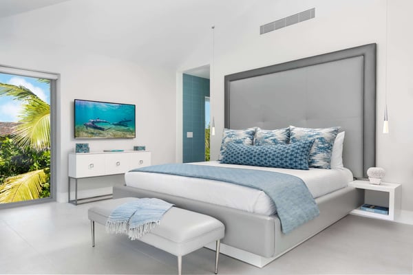 Located on the tranquil shores of Grace Bay, Seascape epitomizes a luxury island lifestyle. This chic five-bedroom, five-bathroom villa offers world-class amenities with unobstructed oceanfront views. The villa features a striking modern design both indoors and out with expansive living space totalling more than 5,500 square feet. Guests of Seascape enjoy superlative elevated service and an exclusive set of ultra-luxury amenities. Indulge yourself in handmade luxury at this stunning Turks & Caicos villa. Seascape can be combined with Seaclusion to create a 13-bedroom, 14 and a half bathroom estate.