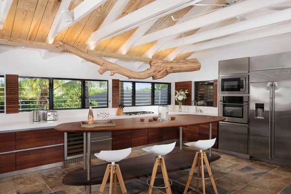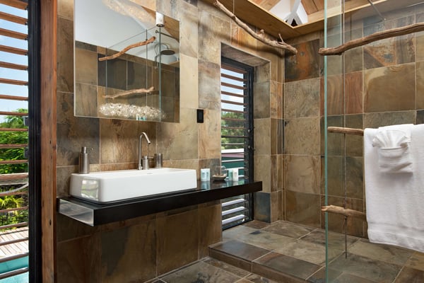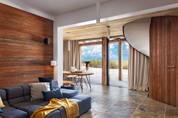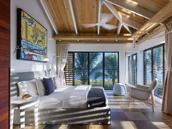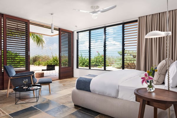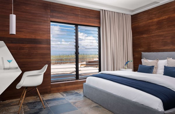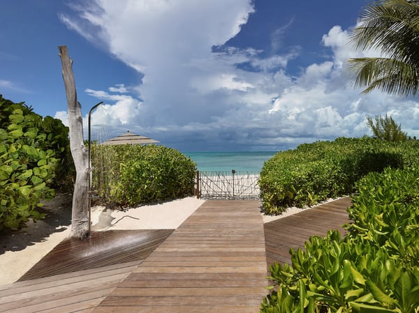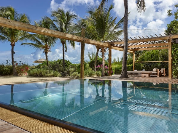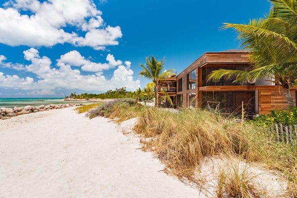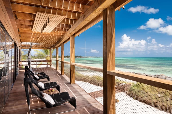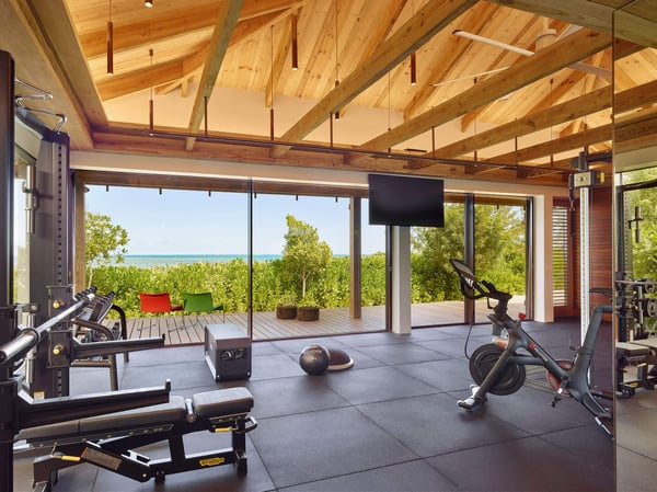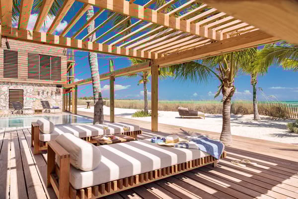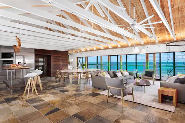 Silver Sands is a villa like no other in the collection. Inspired by its ocean-scape surroundings, the stunning architecture of this home thoughtfully integrates natural stone and wood elements into the home’s contemporary living spaces, allowing guests to feel they are part of the natural, Caribbean environment. The result is a vacation home that is equal parts inviting, luxurious and peaceful. Silver Sands sits on 200 ft of beachfront in Thompson Cove on Provo’s north shore, away from the more commercially developed Grace Bay, allowing guests a tranquil oceanside retreat. The home boasts a state-of-the-art gym pavilion with stunning ocean views and an adjacent illuminated Padel Court and basketball hoop. Combined with an adjoining private massage room, guests can immerse themselves in wellness activities during their stay. The outside areas of the home offer large covered decks with plenty of opportunities for dining, entertaining and relaxing. The main floor decks are complete with a dedicated BBQ grilling space, an al fresco dining area, and lounging furniture. A spiral staircase leads to an elevated 3rd-floor terrace – a perfect location for stargazing. At beach level, guests will find multiple relaxation areas, a fire pit, and a heated stainless steel swimming pool. An underwater Reef Ball shore break, just a short swim or paddle from the water's edge, offers shallow snorkelling with ample opportunities to see tropical fish and turtles. Water toys, including kayaks and paddle boards, are available. The Silver Sands staff who reside at the onsite facilities are ready to cater to guests' needs and deliver an unforgettable Caribbean stay. The 8 bedrooms of this exceptional property can comfortably accommodate up to 16 guests. All bedrooms and common areas are equipped with air conditioning, as well as louvred windows, allowing guests the option to open the spaces to the rhythm of nature itself. Falling asleep to the sound of the ocean waves or waking to a sunrise breeze and bird song elevates the vacation experience. Inside the main living area, you’ll find a spacious, well-appointed, open-plan kitchen, dining area, office nook, and relaxing living room/TV area. The space is flanked by stunning, uninterrupted views of the turquoise waters via louvred windows, and a balcony perfect for lounging. Downstairs, a separate TV room, accessible from the main living area, is perfect for a kids movie night.