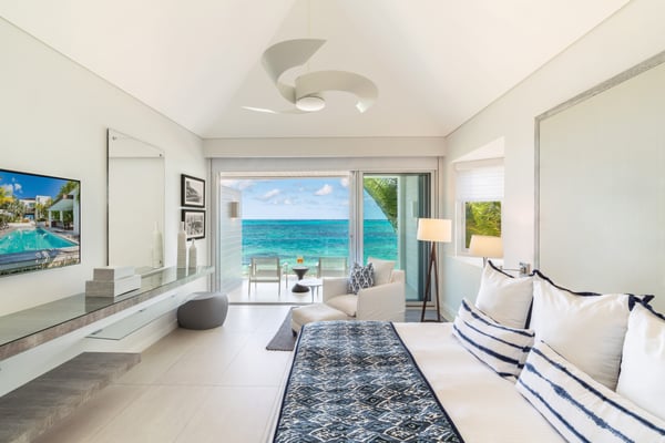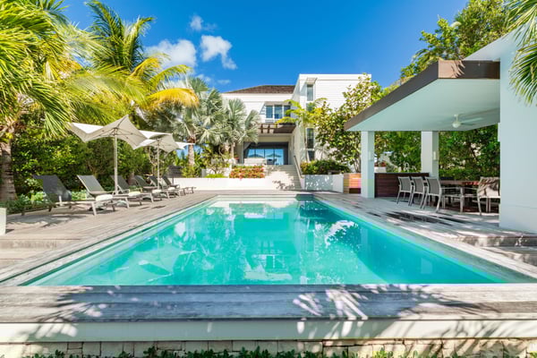 Striking a balance between environmental responsibility and contemporary design, the freestanding private beachfront villa, The Dunes, has set a new standard of excellence for luxury villa homes on the Turks & Caicos Islands from its location on Smith's Reef, approximately a nine-minute drive from the resort. Enjoy breathtaking vistas from the three ocean-view bedroom suites in the main villa (including two master suites), or the utmost privacy in two additional one-bedroom executive pool suites, each with an outdoor shower situated adjacent to the spectacular pool oasis that forms the heart of the villa. The property's five bedrooms and five and a half baths complement expansive indoor-outdoor living space totalling more than 6,700 square feet, all situated within a gated, micro-resort community. In the heart of the villa, delight in the contemporary style oasis-like pool area featuring a floating outdoor dining palapa and a bold fire feature. Oceanside, sliding doors disappear to seamlessly connect the main villa's indoor living space to the full-width beachfront terrace and plunge pool. The sumptuously appointed terrace and pool continue on to unique nesting areas, located within your own private sandy dunes overlooking the famed Smith's Reef. Behind the scenes, multi-zone air conditioning systems, solar water heating, and gray water recycling provide the utmost comfort while utilizing advanced technologies carefully selected to reduce the villa's environmental footprint.