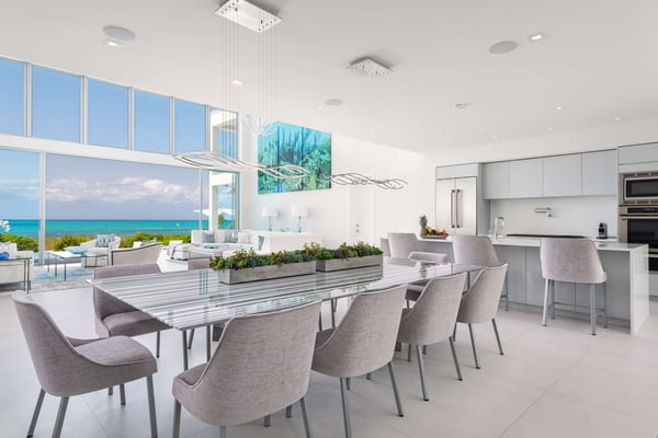 Located on the tranquil shores of Grace Bay, Seascape epitomizes luxury island lifestyle. This chic five-bedroom, five-bathroom villa offers world-class amenities with unobstructed oceanfront views. The villa features striking modern design both indoors and out with expansive living space totalling more than 5,500 square feet. Guests of Seascape enjoy superlative elevated service and an exclusive set of ultra-luxury amenities. Indulge yourself in handmade luxury at this stunning Turks & Caicos Villa. Also located on the shores of Grace Bay Beach is Seaclusion. This eight-bedroom, nine-and-a-half bathroom oceanfront villa offers world-class amenities with unobstructed oceanfront views and six bunks for toddlers. The villa features striking modern design both indoors and out with expansive living space totaling more than 11,800 square feet. Guests of Seaclusion enjoy superlative elevated service and an exclusive set of ultra-luxury amenities. Indulge yourself in handmade luxury at this stunning Turks & Caicos Villa. When combined, Seaclusion and Seascape become Seaclusion Oasis, a 13 bedroom, 14 and a half bath estate.
