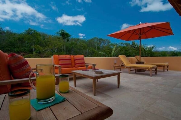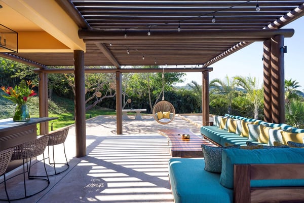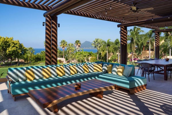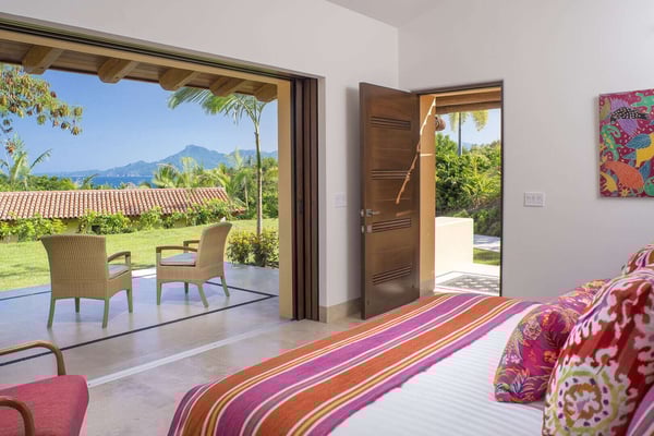 Beautiful 7-bedroom villa located in Kupuri, inside Punta Mita. This majestic house is set high on a mountain offering a privileged ocean view. Casa Querencia is the perfect choice for large groups seeking the ultimate luxury experience, with two infinity pools and a jacuzzi. The house includes a bar with mini fridge, formal dining for 18 people, a media room with four futons and a sound system in the living areas, as well as two golf carts.