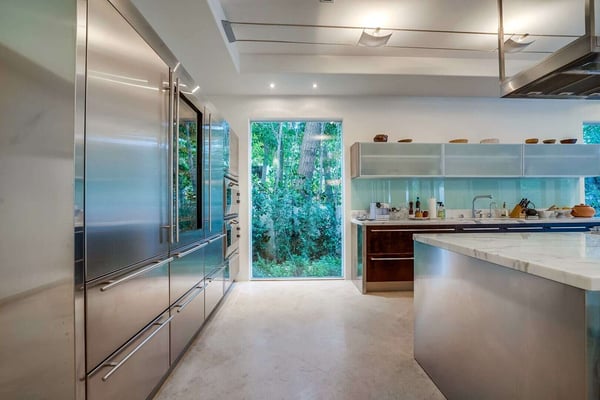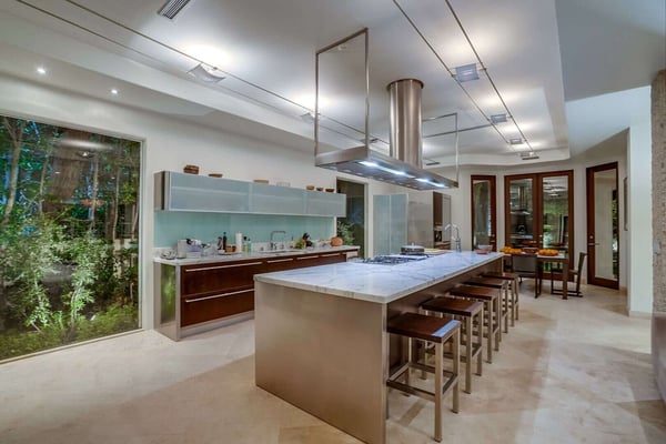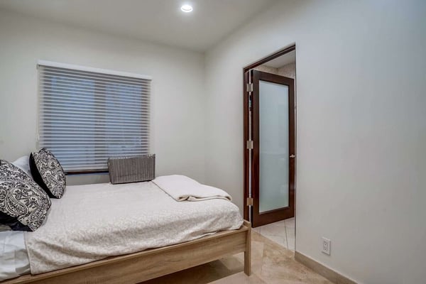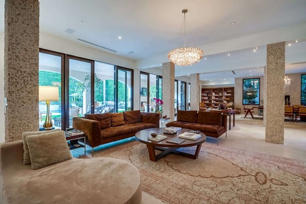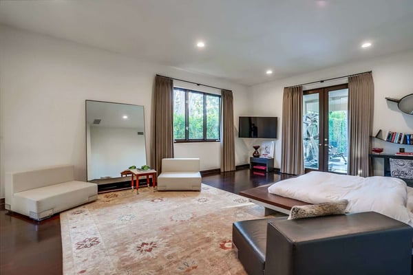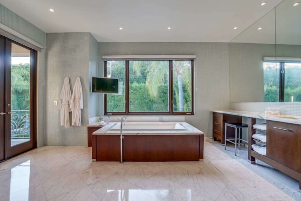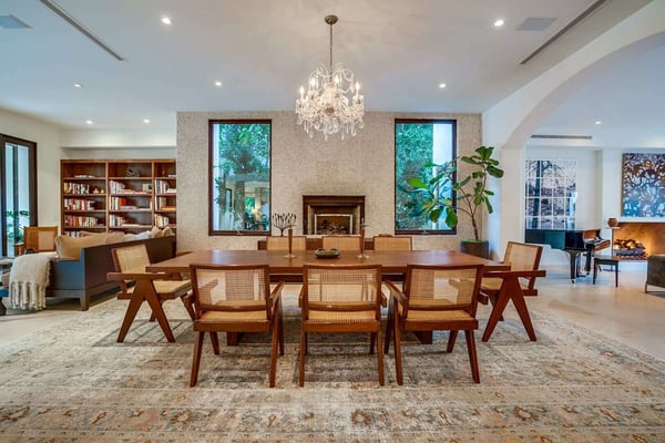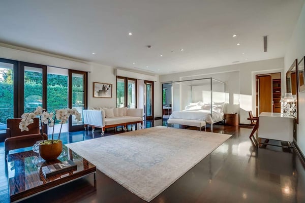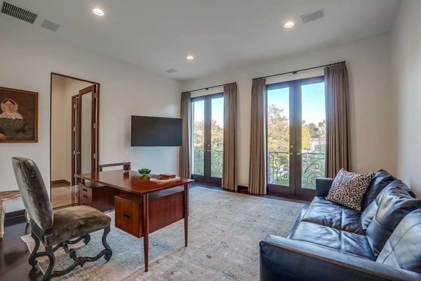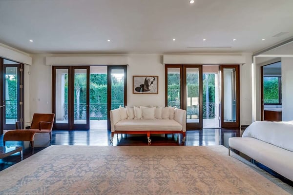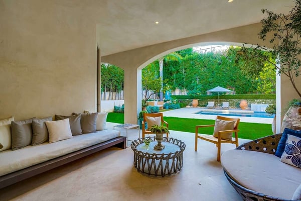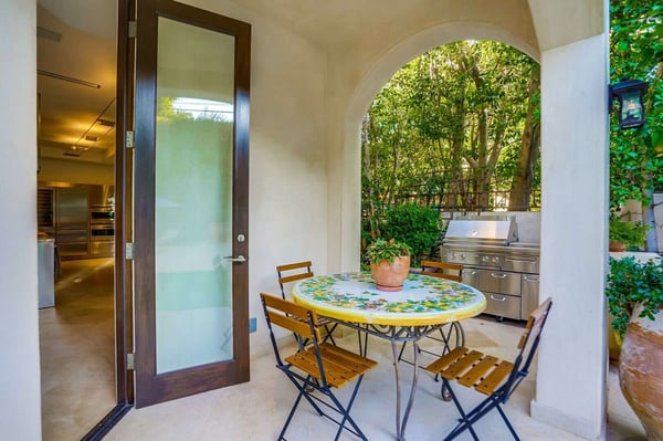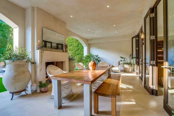 Alta Paradise is set on more than a quarter acre of gated property, but the rear courtyard is the private oasis where you will want to soak in the sunshine. The house opens to an airy loggia with shaded living and dining areas and a fireplace. Palm trees and a lush hedge surround the pool and hot tub, as does a terrace with plenty of loungers. Heat up the barbecue for an alfresco dinner, or opt to entertain inside around the grand piano, sound system or indoor fireplace. The villa's open floor plan and bright interiors epitomize the indoor-outdoor lifestyle that makes Los Angeles so enchanting. At the entrance, 25-foot-high ceilings, travertine floors and a sweeping staircase make a dramatic statement that is matched by the row of ten-foot glass doors connecting the living and dining rooms to the loggia. Even the fully equipped kitchen - which has gorgeous Carrara countertops and a minimalist look - feels like part of the landscape thanks to nearly floor-to-ceiling windows. Relive your honeymoon in the primary bedroom at Alta Paradise, which has a hotel-worthy king bed, en-suite bathroom with jetted tub, a fireplace and its own balcony. There are two other bedrooms with king beds - one with an en-suite bathroom and one that shares a hall bathroom - and one bedroom with a queen bed and en-suite bathroom. The villa's living areas may surpass your expectations, but its location close to the area's top attractions will truly impress. Alta Paradise is less than five miles from shopping on Rodeo Drive and at The Grove, the iconic sights of Hollywood and the world-class concerts at the Hollywood Bowl. It is less than ten miles from the art collection at the Getty Center and the thrills of Universal Studios, and within about 20 miles of your choice of three different beaches.