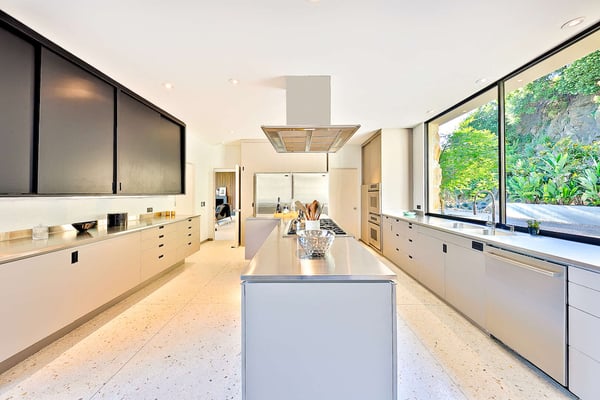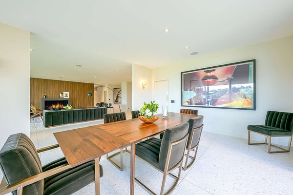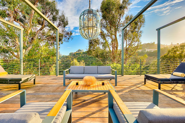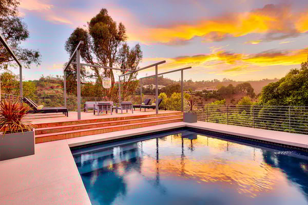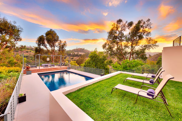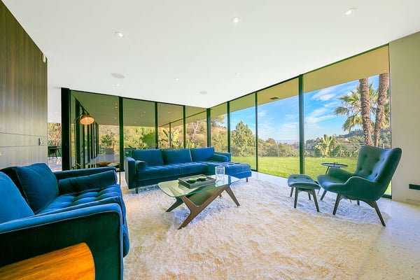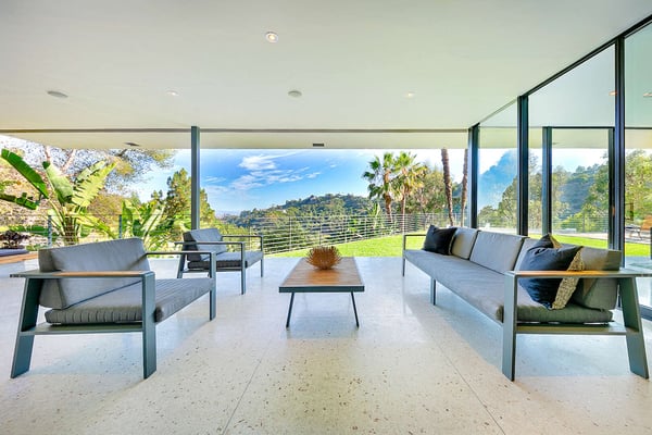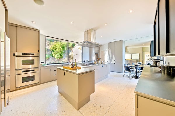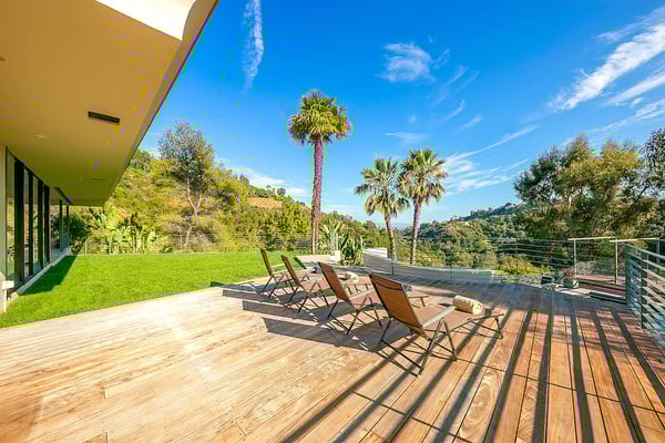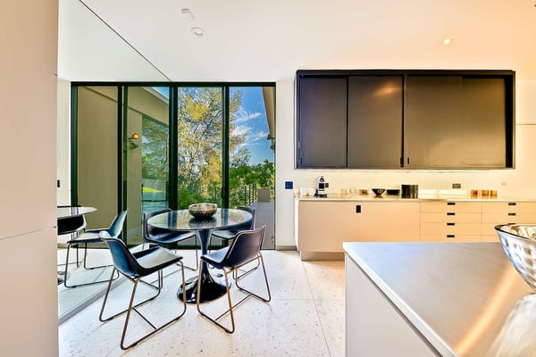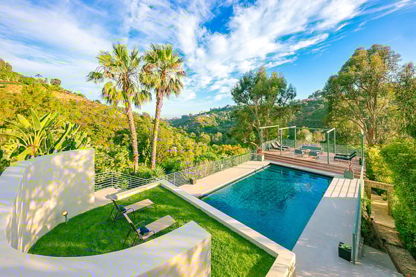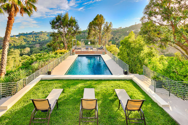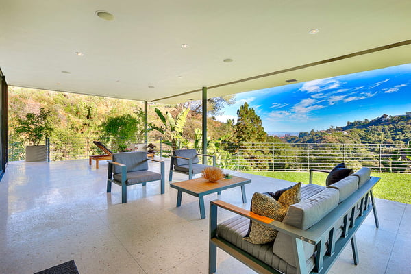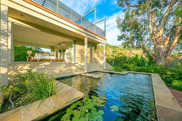 Situated in the exclusive gates of Bel Air, Casa Kaya is a mid-century beauty found up a 200 foot private drive on a completely private parcel. This luxurious Los Angeles gem offers stunning canyon and city views and features five bedrooms and four and a half. Each suite is accompanied by an en-suite bathroom, with two bedrooms sharing a Jack n Jill style configuration. A fifth guest suite, separate from the home with a large koi pond, offering a private entrance, walk-in closet, and lounge area. The home boasts private sitting areas surrounded by lush landscapes, an open indoor-outdoor floor plan perfect for entertaining. This home is the ultimate retreat in the center of it all!
