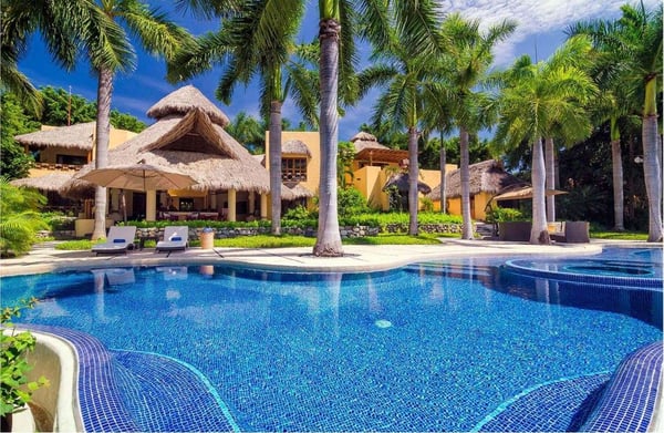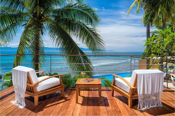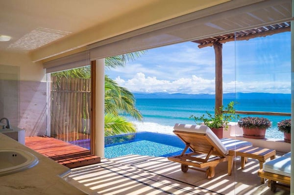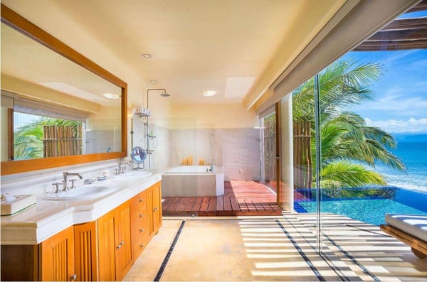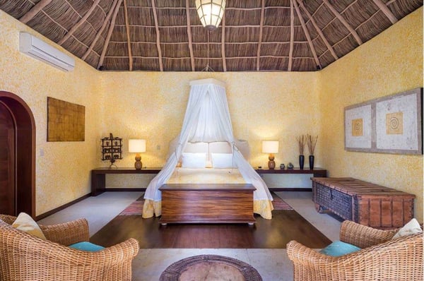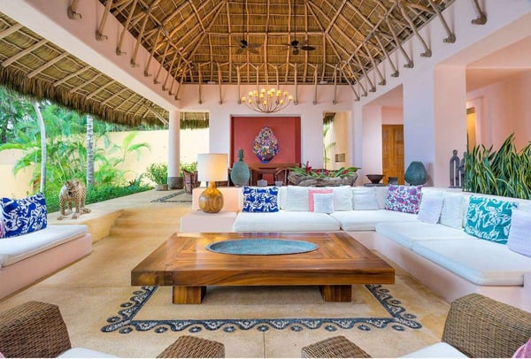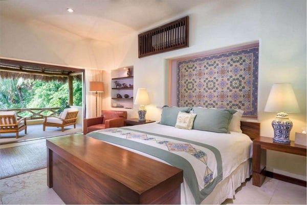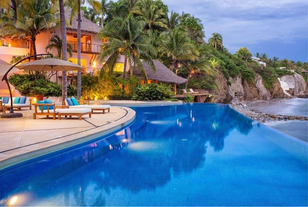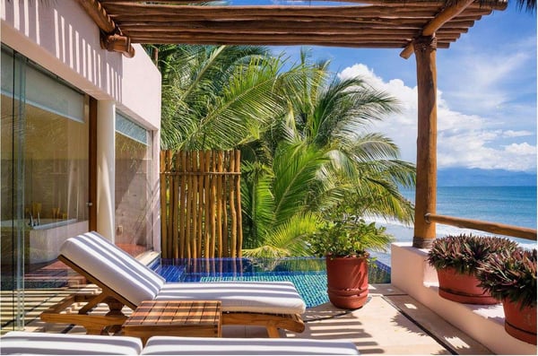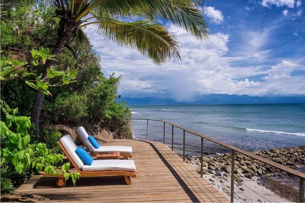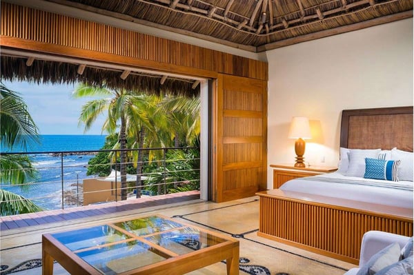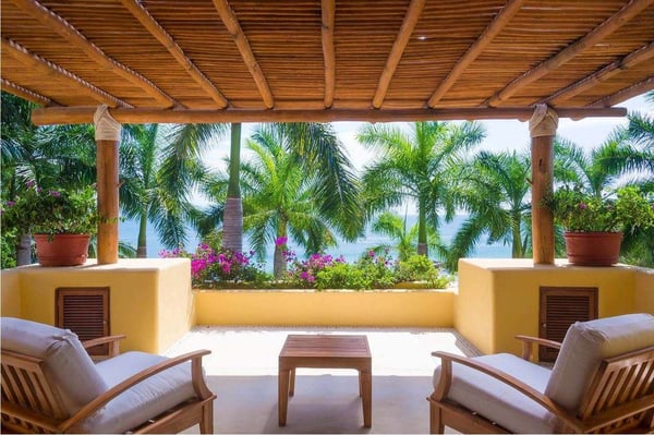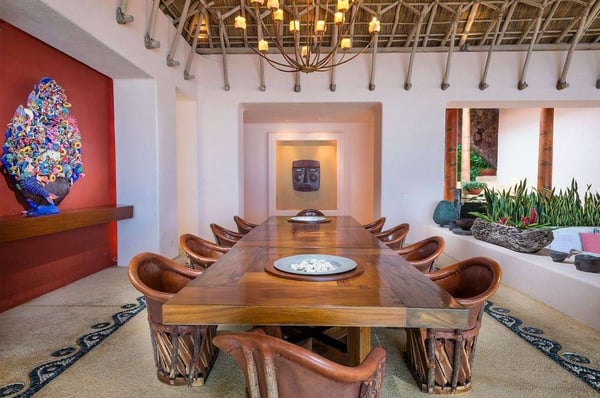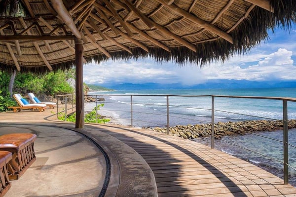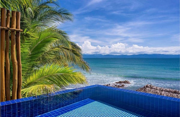 Oceanfront Luxury Villa in the prestigious El Farallon Development in the Punta de Mita area, with full access to the W Hotel beach club, Cuixas del Mar also offers a private beach. This oceanfront villa boasts an unbeatable view, luxurious amenities, and countless settings for relaxing whilst enjoying the surrounding paradise. The home is situated around a central indoor/outdoor living and dining area, covered by a thatched-roof palapa, that extends onto an expansive terrace with an infinity pool. The home features designer furnishings and tasteful decor inspired by Mexican art, along with natural stone and native wood finishes. Inside, the industrial-size kitchen is fully equipped with state-of-the-art amenities, and outside a grill and pizza oven offer additional cooking possibilities for incredible in-home dining. The spacious bedrooms feature gorgeous furnishings and luxury linens, plus large, ensuite bathrooms with marble floors and walk-in showers. Bedrooms also access private patios, offering ocean or garden views, and the primary suite features a private terrace with a plunge pool. The home offers a private fitness room and private tennis court, a fully wired media room, and direct beach access. The home is also equipped with Wifi, satellite television, and a built-in organic anti-mosquito system, as well as daily housekeeping and 24/7 security.