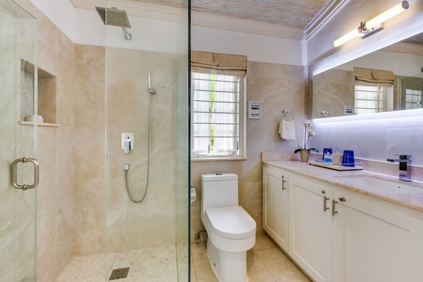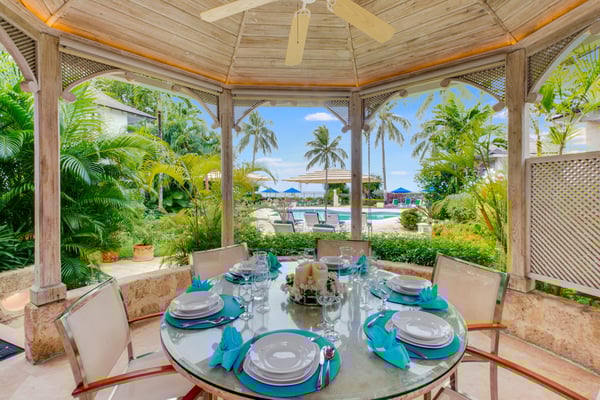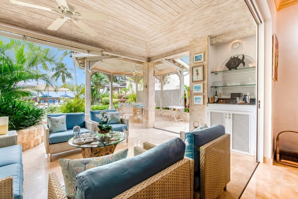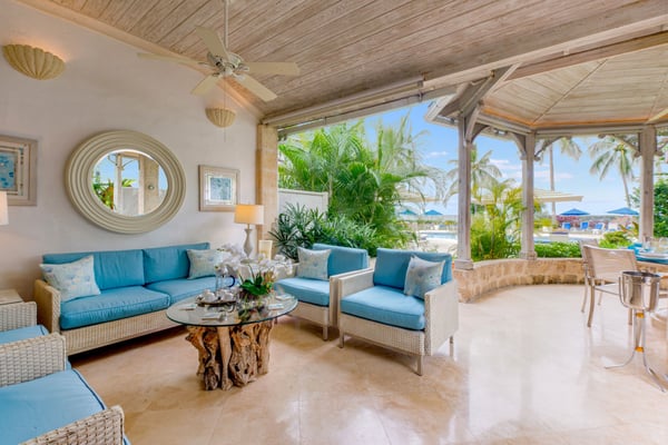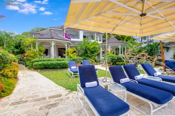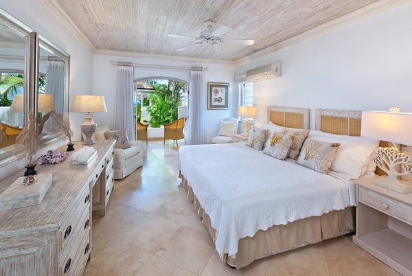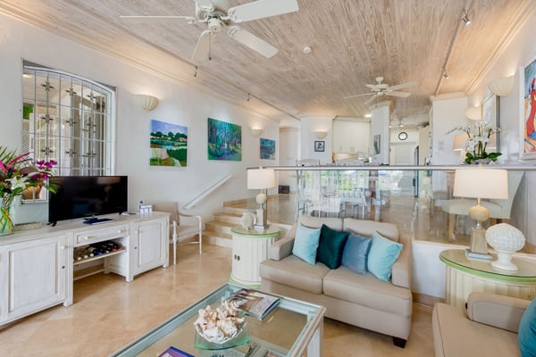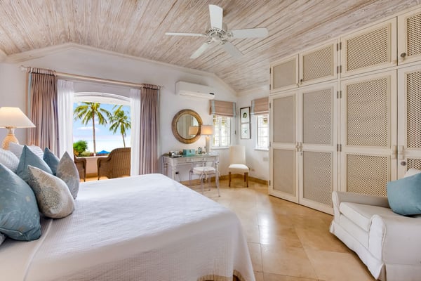 Please note that due to the passage of Hurricane Beryl, this property may have limited beachfront access. Nearby construction may result in noise disturbances. For further details on how this might affect your stay, please reach out to a Rental Escapes villa specialist. Just six luxury villas wonderfully situated on Gibbs Bay in over an acre of landscaped gardens. Each villa has three generously large air conditioned bedrooms, two on the upper level and one on the ground floor, all with private patios enjoying spectacular views of the Caribbean Sea. All bedrooms feature en suite bathrooms. Ceiling fans are throughout. In addition to excellent beach and swimming facilities, there is a large saltwater pool for the exclusive use of residents.