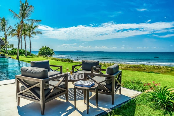 This modern-chic villa is the perfect getaway for family and friends, with six bedrooms and a full staff that will make your stay a dream come true. Villa Vatule is located in La Punta Estates inside the gated community of Punta Mita. The 72-foot infinity pool is oceanfront with a wet bar and a barbecue. The property also features a jacuzzi that seats up to 14 people and even a large playing field for soccer or bocce.