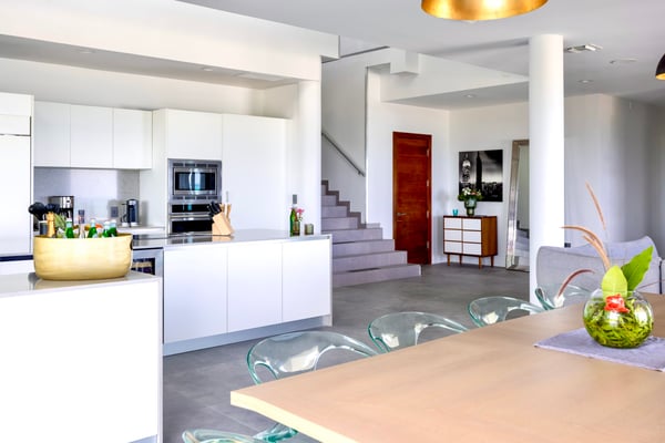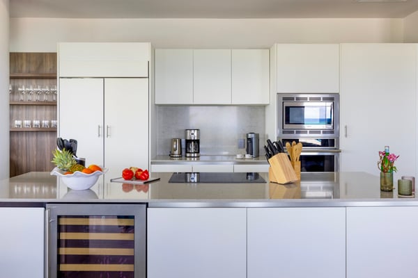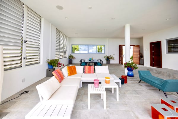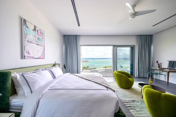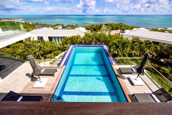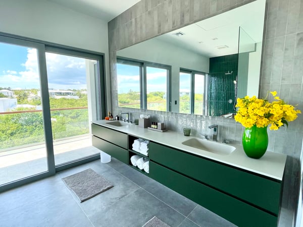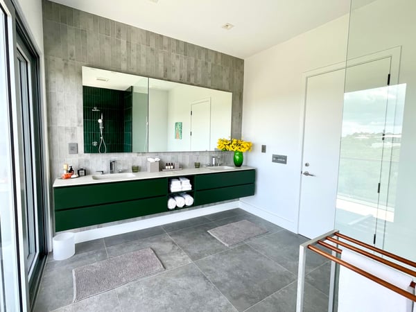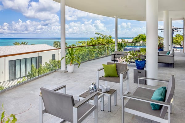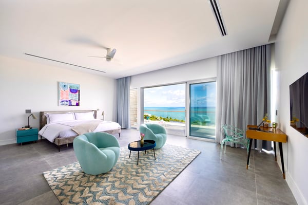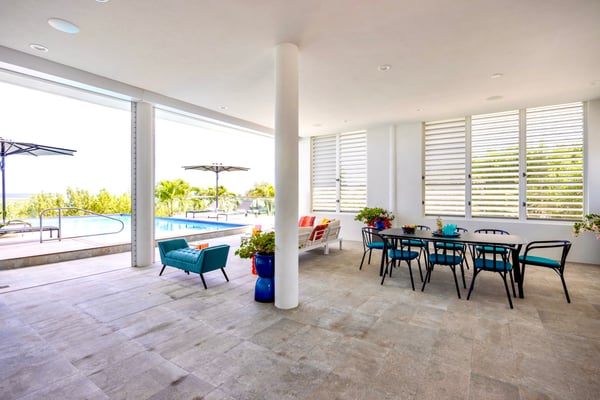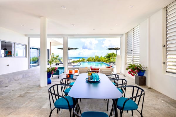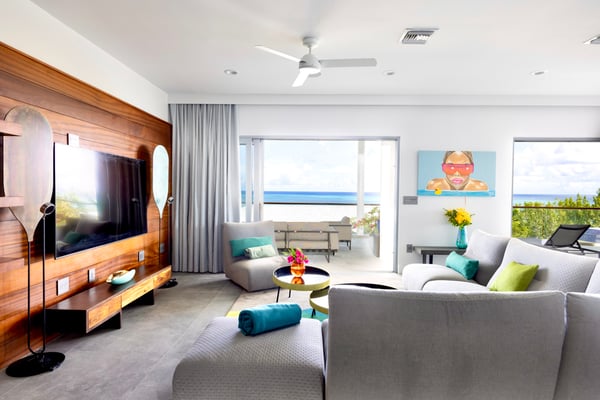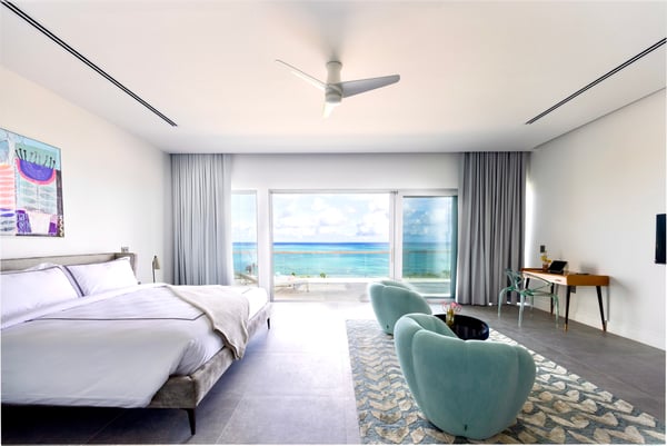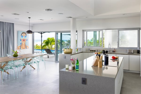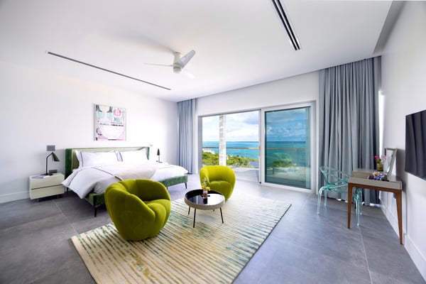 Welcome to this serene hillside villa in one of the most beautiful places on the island. Villa Skyline is a unique hideaway, resting atop Blue Mountain with breathtaking lookouts across the island and the ocean. Like the other villas, it is also elegantly furnished with finely selected designer pieces of furniture from Roche Bobois. The villa features imported kitchen and bathroom furniture from Italy, as well as top-of-the-line appliances and accessories from Europe and the USA. This villa boasts 5 spacious bedrooms, each with an ensuite luxurious bathroom and private terrace. Two newly added high-end guest suites come with kitchenettes and private balconies, delivering an even more exclusive oceanfront experience.Each room also includes a workspace.