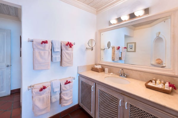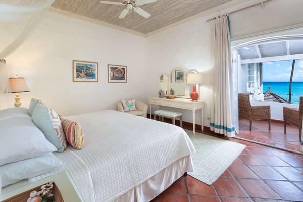 Please note that due to the passage of Hurricane Beryl, this property may have limited beachfront access. Nearby construction may result in noise disturbances. For further details on how this might affect your stay, please reach out to a Rental Escapes villa specialist. One of just six luxury villas wonderfully sited on Gibbs Bay in over an acre of landscaped gardens. Each villa has three generously large air-conditioned en suite bedrooms, two on the upper level and one of the ground floor, all with private patios enjoying spectacular views of the Caribbean Sea. All bedrooms are equipped with smart televisions and feature mosquito screens at all windows as do the bathrooms. In addition to excellent beach and swimming facilities, there is a large saltwater pool for the exclusive use of residents.
