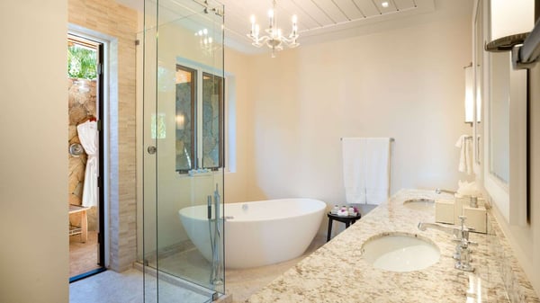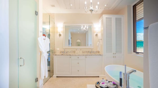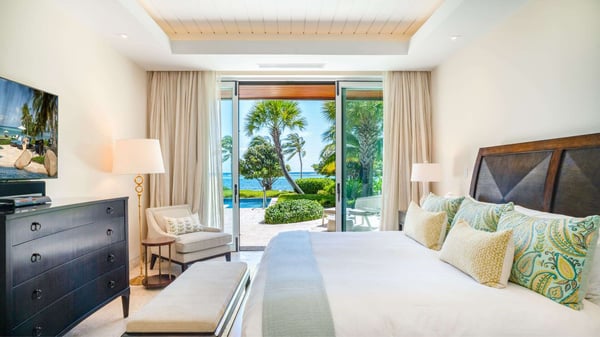 Steps from Oil Nut Bay’s white sand beach and protected, turtle-filled bay, Cheemaun Beach Villa offers sophisticated seaside living that is second to none. With expansive indoor and outdoor living space, three bedrooms, three full bathrooms, and two half baths, this gracious Virgin Gorda villa rental is the ideal escape. The Great Room includes a gourmet kitchen, large dining and living spaces and soaring vaulted ceilings. The outdoor patio is anchored by a large covered lounge overlooking the infinity pool and adjacent to outdoor dining, grill and wet bar for effortless entertaining. This beachfront villa is only a short walk to the social Beach Club and the resort’s luxury amenities, or utilize your complimentary six-passenger electric cart to explore the island. Unwind with friends and family or fill your days with Oil Nut Bay’s many activities.