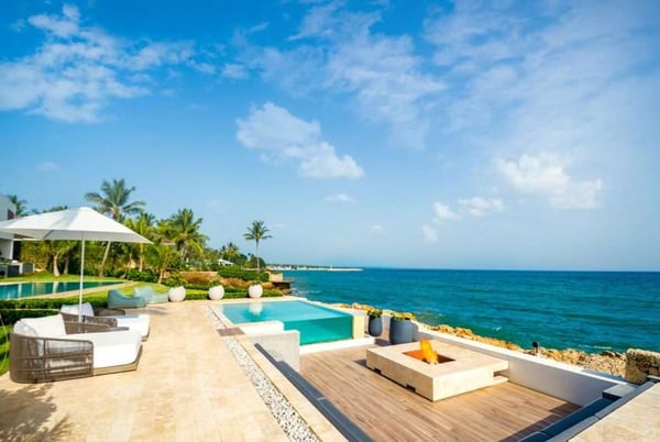 All guests must register with the Casa de Campo Concierge office, and for a small daily fee ($30 per adult per night & $15 per child per night), are granted access to resort areas and amenities. Casa de Campo Resort facilities and amenities include golf courses ($), the fitness centre ($), racquet center ($), restaurants ($) and bars ($). Contact Rental Escapes for more information about pricing. Ocean Bliss is a modern oceanfront villa located in the exclusive Punta Minitas neighborhood, offering breathtaking views of the Caribbean Sea and the Casa de Campo Marina. This exceptional property combines contemporary design with luxurious amenities, creating the perfect setting for a memorable getaway. The villa’s open-plan design features expansive living spaces that flow seamlessly onto a large ocean-facing terrace, offering an unparalleled backdrop for relaxing or entertaining. The formal dining room, complete with a fully equipped bar and wall-to-wall wine cooler, is perfect for hosting gatherings or enjoying quiet evenings. Two media rooms provide additional spaces for entertainment, while a dedicated office ensures convenience for guests who need to stay connected. Each of the villa’s six bedrooms offers serene ocean views, private balconies, and luxurious en-suite bathrooms, ensuring a tranquil retreat for every guest. Outdoors, the villa boasts a spacious swimming pool and Jacuzzi, creating a refreshing oasis for relaxation. A gazebo with alfresco dining and seating areas, along with an exterior BBQ, provides the perfect setup for enjoying outdoor meals and socializing in a stunning setting. Situated between Minitas Beach and the Casa de Campo Marina, Ocean Bliss offers convenient access to beachside activities and the vibrant marina atmosphere. Whether you’re seeking relaxation, entertainment, or the beauty of the Dominican coastline, this villa delivers an unforgettable vacation experience.