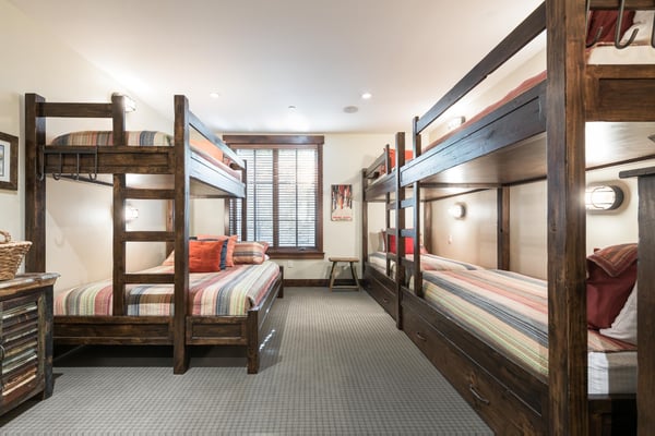 Rental Escapes has partnered with Ski Butlers to offer you the best rental experience in the industry. No more lines. Ski Butlers is a full-service ski and snowboard company that delivers the equipment to you. Contact a villa specialist for more information. Located slopeside at Park City Mountain Resort, Silver Star #04 is a six-bedroom, six-bathroom, ski-in/ski-out home that accommodates up to 19 guests! Enjoy luxurious community amenities, including a heated pool, fitness center, and ski storage. Shopping, dining, and entertainment are only five minutes away on Main Street. Known for endless outdoor activities—skiing, hiking, rafting, fly fishing, ziplines, and more—guests will find plenty of adventures year-round! After a joyful day of mountain fun, indulge in cocktails around the fireplace or firepit, followed by a rejuvenating soak in the private hot tub. Quintessential mountain charm welcomes guests inside this three-story home. In the living space, natural light from the oversized windows casts a warm glow on the charming mix of leather and upholstered furniture. A 66” Smart TV hangs above the stone fireplace for nights of relaxed entertainment. Head over to the well-appointed kitchen, where Viking appliances inspire culinary genius and the five-seat bar provides seating for quick bites. Continue past the eight-person table to the patio and enjoy the alpine air while taking advantage of the hot tub, fire pit, and natural gas. When night falls, retire to either of the two guest bedrooms on this level—the first bedroom has a queen bed, and the second includes a full bed and a private balcony. All the bedrooms in this home have private bathrooms. The bottom floor hosts a guest bedroom with two twin beds, a Smart TV, and porch access. Additionally, there’s a kid-friendly bunk room featuring two twin-over-twin bunk beds, one twin-over-full bed, and two twin trundles. A comfortable primary bedroom boasting a king bed, gas fireplace, Smart TV, and private balcony waits on the top floor alongside a guest bedroom with a queen bed and Smart TV. Experience all that Park City offers at Silver Star #04! Easily commute with parking for two vehicles in the garage and two in the driveway—plus the complimentary Silver Star Shuttle service. For ski-in/ski-out access, exit the cottage left and walk uphill. Between Cottage 8 and Cottage 12 is a paved path to the cottage ski lockers and the funicular to the Silver Star run.