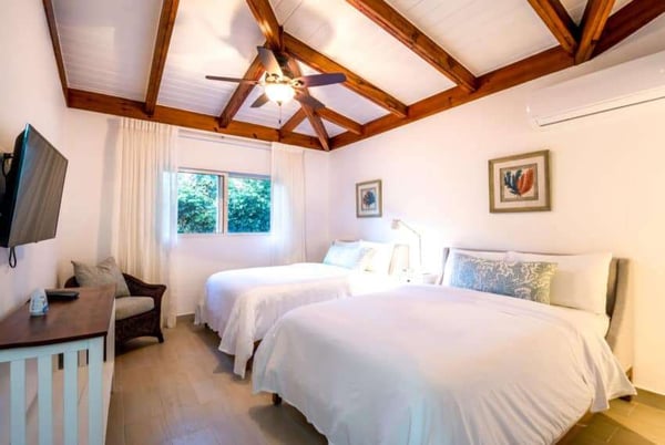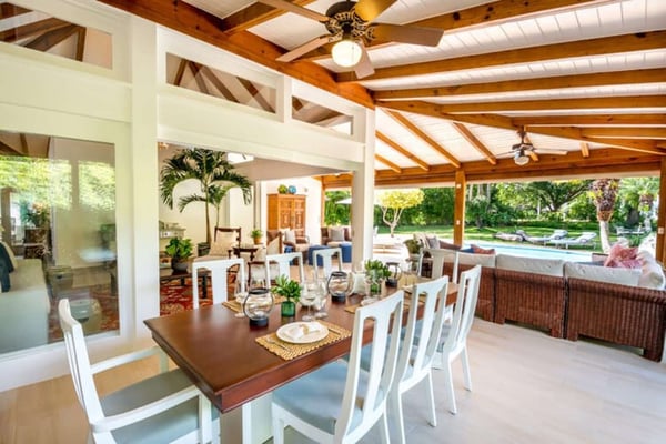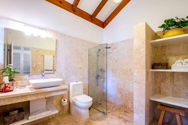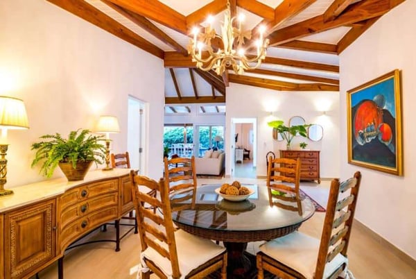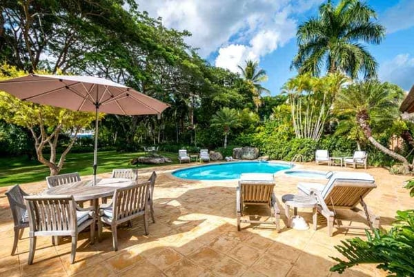 All guests must register with the Casa de Campo Concierge office, and for a small daily fee ($30 per adult per night & $15 per child per night), are granted access to resort areas and amenities. Casa de Campo Resort facilities and amenities include golf courses ($), the fitness centre ($), racquet center ($), restaurants ($) and bars ($). Contact Rental Escapes for more information about pricing. La Sérénité is a serene Caribbean retreat located in the prestigious Casa de Campo resort, offering the perfect balance of indoor and outdoor living. Thoughtfully designed to embrace its natural surroundings, this villa provides both open social areas and private spaces for a truly relaxing getaway. Situated in the Los Lagos area, La Sérénité features a master bedroom and three guest bedrooms, each offering a peaceful atmosphere for rest and rejuvenation. The outdoor spaces are a highlight, with a swimming pool, heated jacuzzi, and a BBQ area, ideal for cooling off, unwinding, and enjoying al fresco meals. The expansive backyard, shaded by a magnificent tree, creates a tranquil setting perfect for relaxation and leisure. Conveniently located near the beach, guests can enjoy a short stroll to the shoreline for sunbathing, swimming, or beachside activities. La Sérénité combines modern comfort with natural beauty, making it an ideal destination for an unforgettable Caribbean escape.