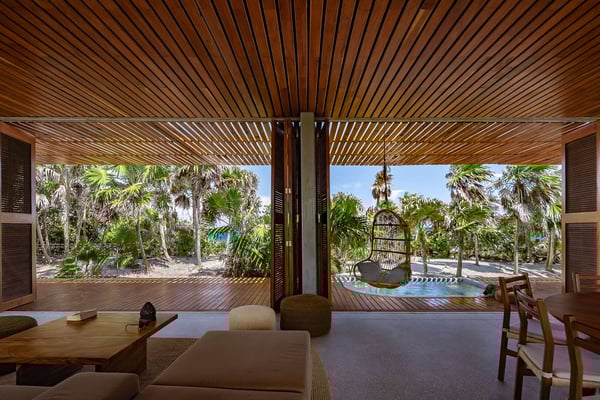 The roads in Sian Ka'an are unpaved and therefore distances and times may vary depending on the season and road quality and conditions. Behind every beautiful thing, there is a vision, a deep belief that things are possible, and the dedicated work of the team. It is not any different from the Casa Bautista. It took the guts and the trust of the owner to follow through the project of six years, to go on the journey to protect the Sian Ka'an by developing the land in the most sustainable of ways. Furthering his vision of sustainable living based on honouring our intrinsic values, he enlisted the help of a leading architecture firm, Productora from Mexico City to work on the project. The result has seen this villa win the 2020 Wallpaper Design Awards. As a founder of the village Pueblo del Sol, in Oaxaca, and as with everything that he does, indigenous, local people come first. You can sense that intention and kindness transferred to the experience of the house as well. Newly inaugurated Casa Bautista is tucked in the Sian Ka'an Biosphere, Tulum's Unesco Heritage-protected jungle, it is promising to be an ultimate experience in truly sustainable luxury. La Casa is created under the umbrella of Pueblo del Sol, a project in Oaxaca that is committed to working with indigenous communities. You will have the taste of their highly-rated gourmet coffee and honey brought straight to your table. Your stay supports the project. Located only three kilometers south of the Tulum gate, Casa Bautista is your private paradise still close enough to civilization. You can choose to remain in your private jungle with no other people in sight or drive to Tulum's trendy area for some Nomad Chic sustainable fashion and creative Yucatan gastronomy. Please note, due to Sian Ka’an being a protected reserve, it is not permitted to bring external ATVs, water sports equipment such as kiteboards, or audio equipment. It is also forbidden to fish, in order to protect the endangered sea life. Additionally, pets are not allowed.