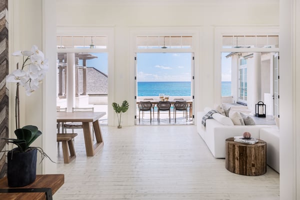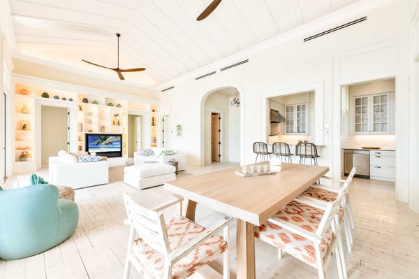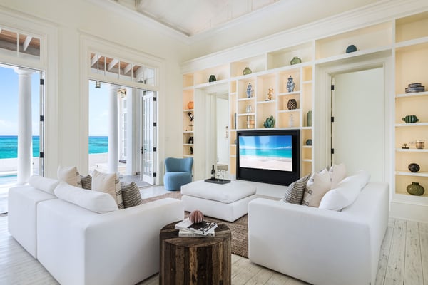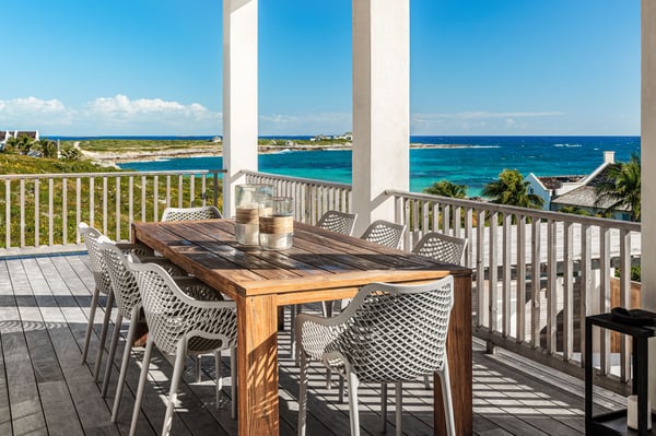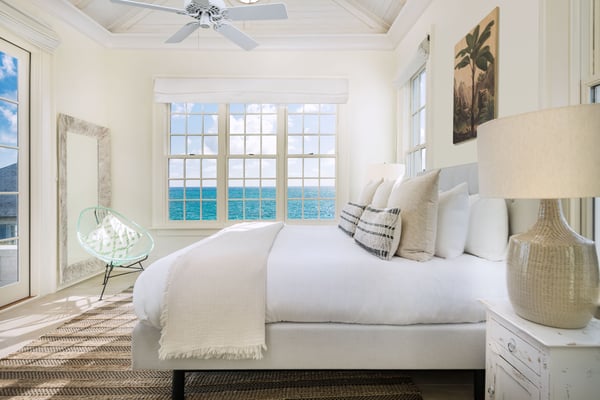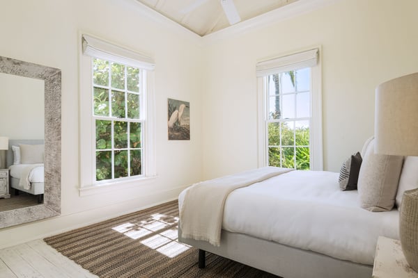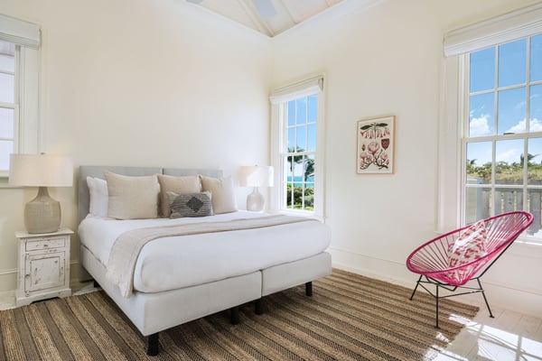 Morning Star is a 4-bedroom villa set on the hillside, overlooking the sandy north end of Columbus Beach and offering a partial ocean view, this single-level home features a full kitchen and open-plan living and dining room. French doors open onto an expansive deck with a heated pool, sun loungers, and an outdoor dining table. Its distinguishing characteristics include a mural of floating roses on the dining room wall and a colourful ombre wall in each bedroom. Morning Star is approximately 50m from the beach and just 200m from the tennis and pickleball courts. Calico Restaurant is a 10-15 minute walk or 3-minute golf-cart ride. Monck Beach is a 15-20 minute walk or 5-minute ride, and the Club House is a 6-minute ride. For larger groups looking to book multiple homes near each other, Morning Star is within a 2-minute walk from Poseidon and Lady Blue and less than a 3-minute golf cart ride from Aurora.